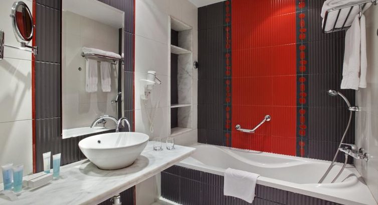 Номер отличный я был один в номере с двумя кроватями, номере есть и журнальный стол со стулом и письменный стол с кожанным креслом, есть и столик с креслом для курения, есть мини бар то что на нём с верху стоит можно смело употреблять, то есть кофе, чай, воду, бесплатно. Туалет, ванна, фен, шампуни всё прекасно. Пол покрыт ковром. Замки в номерах электронные. У меня окна номера выходили на пешеходную улицу, народ там гуляет до глубокой ночи очень шумно, чтобы уснуть пришлось голову под подушку засунуть, потом я спал хорошо, видимо после 12 ч. ночи всё стихает. Отличный ресторан. В вестибюле играет живая музыка мелодичные спокойные мотивы.