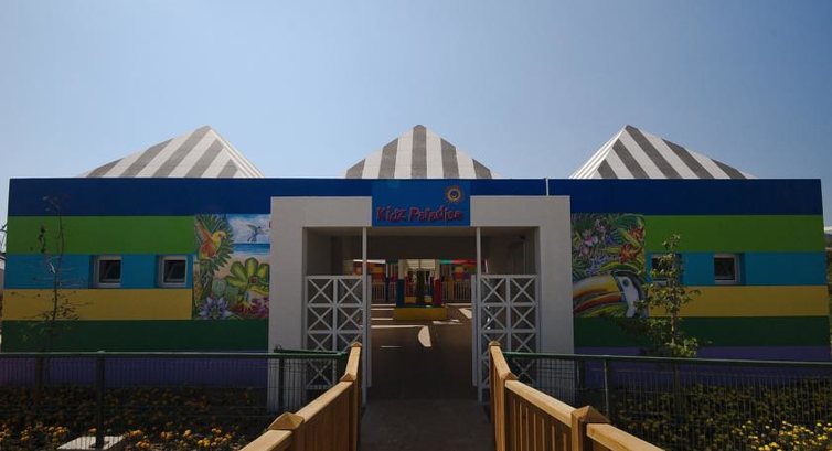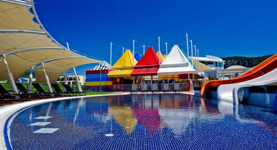 Территория очень грамотно сконфигурирована и вообще архитекторам и дизайнерам респект и уважение. Все удобно и понятно. Красиво расположенные бассейны и особенно дизайнерские места для лежаков и навесов. Лежаков хватало всегда на всех. Отдельно хочется выделить отельный аквапарк, состоящий из детского и взрослого. Отлично подобраны горки, всегда очень чисто и нет брезгливости. Даже детей отпускали без проблем, хотя ранее их к бассейнам, особенно детским, не пускали из-за опасения подцепить заразу. Красивый детский клуб и великолепный персонал. Мы не ходили, но видели, как дети туда рвались и были влюблены в аниматоров и как плакали прощаясь. А мини-диско вечером собирало больше народа, чем вечерние шоу. Основная причина та же – персонал. Как знак уровня отеля – отношение к инвалидам и удобства для них. Были даже специальные кресла-роботы (или как их там назвать) для купания инвалидов. Эти системы опускали колясочников в бассейны и море.
