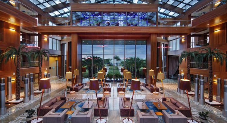 Добрались до отеля около 23-х часов.На рецепшене нам посоветовали пойти поужинать в ресторан,чем мы и воспользовались. Затем, после недолгой процедуры оформления,предоставили номер.Сразу-же неприятность-сломан смеситель в душе. Позвонили на рецепшен,нас попросили , вернее с нами договорились , о времени ремонта(кстати все вовремя исправлено). Питание достаточно разнообразное: мяса 5-6 блюд ,кстати, каждое утро даже бекон жареный был-это-то в мусульманской стране !!! Если вы хотите поесть вкусной колбаски - то вам не в турцию надо ехать . Как мне кажется,без свинины, эти продукты спецефичны. Говядина,баранина ,курятина,перепелки,индейка и все производное из них. Морепродукты:хотелось бы побольше разнообразия,но все равно 3-4 -5 блюд было. Овощи это- конек всех турецких поваров !!! Разнообразие блюд из них сумасшедше е. Вообщем-питание меня устроило. Территория большая ,красивая. Я любил с семьей прогуляться вечером,а лавочек-то нет,присесть на природе негде,а вбарах на стульях и диванах -это не то. Настроение это не портило,хотя неудобство имеется. Обслуживание хорошее,не напрягало. Анимация:через день выступали разные пецы,танцоры и т. д. хорошие итак себе. 20-ти летней дочери было скучно,иностранцы(их 90%)только сидят и созерцают. Девчонки- аниматоры (русские) работали на совесть. вывод: Если хотите тихого, спокойного отдыха, то вам сюда.
