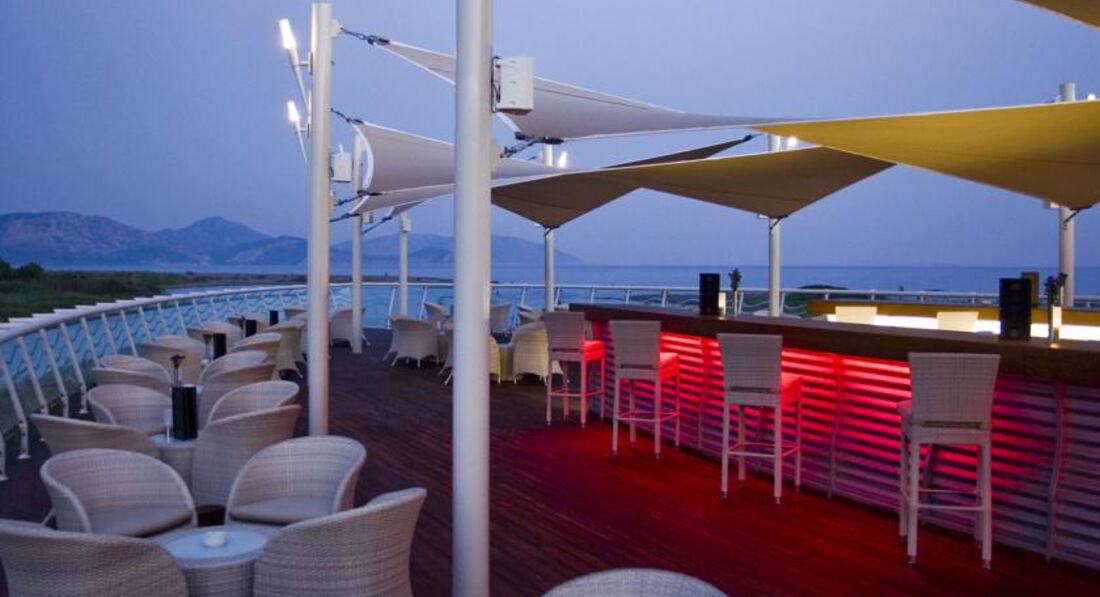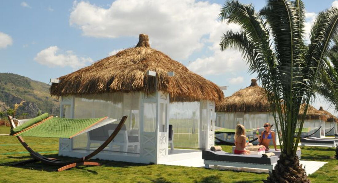 Про анимацию я уже писал выше. Теперь о пляже. Он большой, песчаный, в связи с тем, что он находится на черепаховой охранной зоне (где эти черепахи – не знаю, не было по утрам даже следов на песку, как например на Пелопоннесе каждое утро), зона лежаков непривычно далеко от воды. От неё ведут деревянные тропинки к воде и пирсу (в полдень по ним уже без тапочек не пройдёшь, если не хочешь поджарить пятки). Пирс в отеле особенный, это пирс-пляж с лежаками для особых любителей пожариться без зонтиков, с удобными лестницами в море. Это особенно актуально после обеда, когда к берегу прибивает растительный мусор и входить обычно с берега иногда становится не совсем приятно. Но эта «грязь» природная и от нее, ни куда не денешься. Море хорошее, чувствуется влияние Эгейского моря, хотя здесь ещё Средниземное (а побережье Эгейское). До воды песок, а далее мелкая галька, так что вход не идеален, но тапочки в принципе не нужны. На пляже есть будка «самообслуживания» по напиткам и пиву, рядом дают айран, лимонад и чай (а днём пекут лепёшки). В отдельной зоне на травке стоят Газебы. Они платные, от 40 до 100 Евро в сутки. В принципе они предназначены для гостей ВИП-номеров бесплатно, но можно забронировать на guest relation. Они отличаются типом, размерами и сервисом. Мы брали простой (в основном из-за того, что они расположены прямо на земле и нет ступенек, нежелательных для детей), он простой, навес со стенками, кровать и лежаки с зонтиком, а дорогих это как летняя веранда с холодильником с напитками, сервированным столом с фруктами и «room»-сервисом, вернее gazebo-сервисом (можно заказать еду). А в простых нет холодильника и не сервировали столик, нужно было просить, что бы принесли что хочется. Так же в этой зоне был массажный газебо, где можно было заказать различные виды массажа. А главное преимущество Газебо – это бесплатный WiFi (с интернетом в отеле не всё так просто)! Если заказываешь Газебо на две недели – делают скидку, нам сделали два дня бесплатно и Вы знаете что этот домик Ваш (можно пляжные игрушки, например оставлять там на ночь).