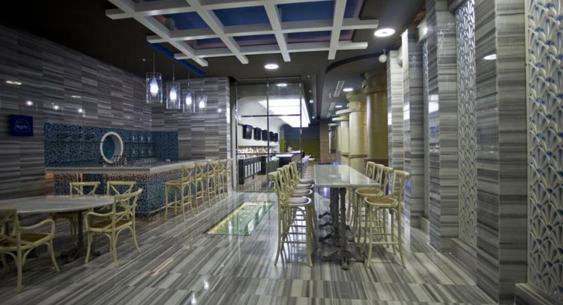 Включає: сніданок (07:00-10:00), пізній сніданок (10:00-11:00), обід (12:30-14:30), вечеря (19:00-21:30), пізній вечеря (24:00-01:00) – шведський стіл; закуски протягом дня у барах готелю, алкогольні та безалкогольні напої місцевого виробництва, певний вибір імпортних алкогольних напоїв. Свіжі соки - платно, морозиво (під час обіду та вечері) - безкоштовно. Молодятам - кошик з фруктами, шампанське, сніданок у номер, торт, відвідування ресторану A la Carte (1 раз); постійним гостям – фрукти; іменинникам - торт та шампанське.