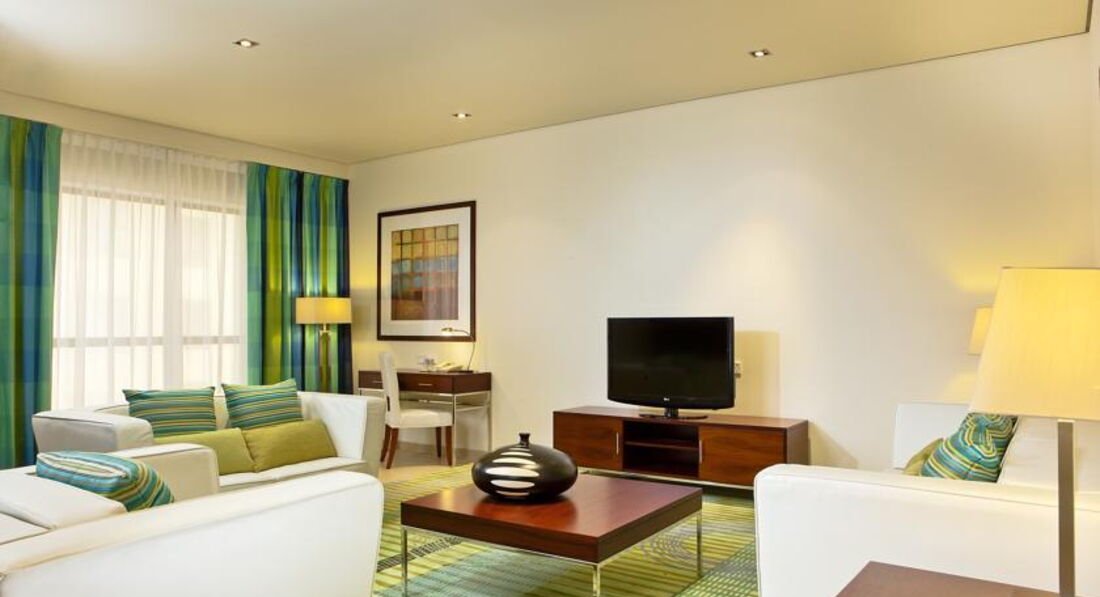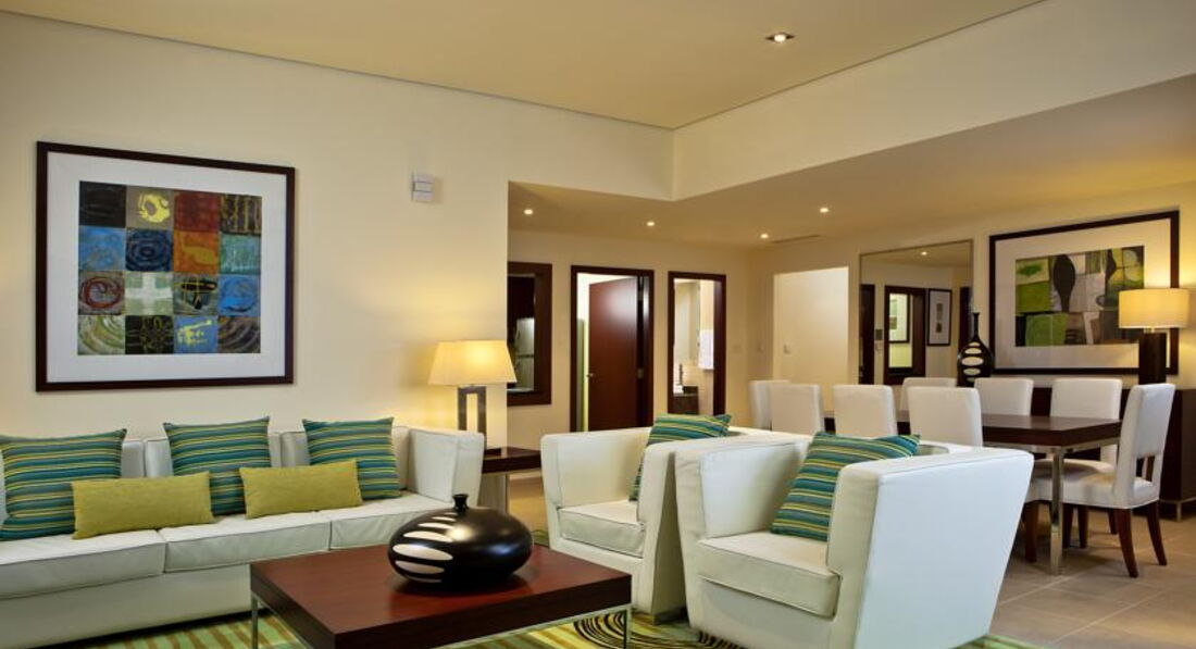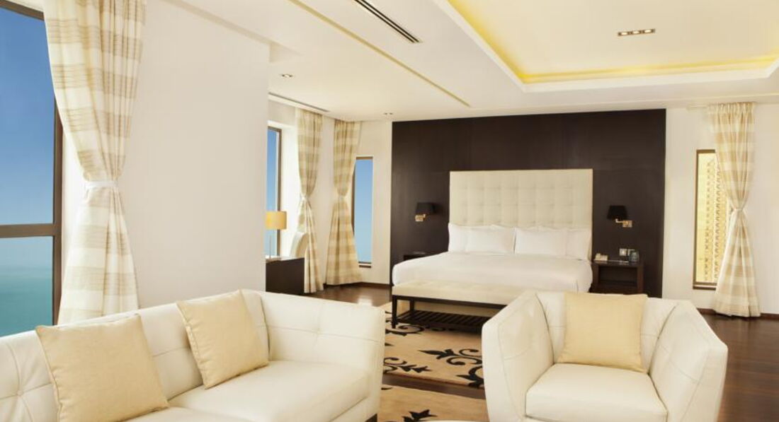 Жила в этом отеле во время рекламного тура 3 дня.Отель очень приличный, на мой взгляд,пляж просто замечательный. Питание было только завтраки.Тоже на очень высоком уровне.Ресторан небольшой, очень уютный.Территория небольшая, очень грамотно спланирована. Единственный минус - маленький бассейн.Когда отдыхаешь летом, вода в персидском заливе очень горячая, и комфортнее плавать в бассейне. Бассейн с регулировкой температуры - летом воду охлаждают, зимой подогревают (возможно именно с этим связан его небольшой размер, так как охладить большой бассейн значительно тяжелее). Номера в береговом отеле скромнее, чем в том, что через дорогу,Hilton Residence.В общем, я бы этот отель посоветовала для отдыха тем, кто предпочитает первую линию и для семейного отдыха с детьми.Только конечно лучше выбирать менее жаркие месяцы.