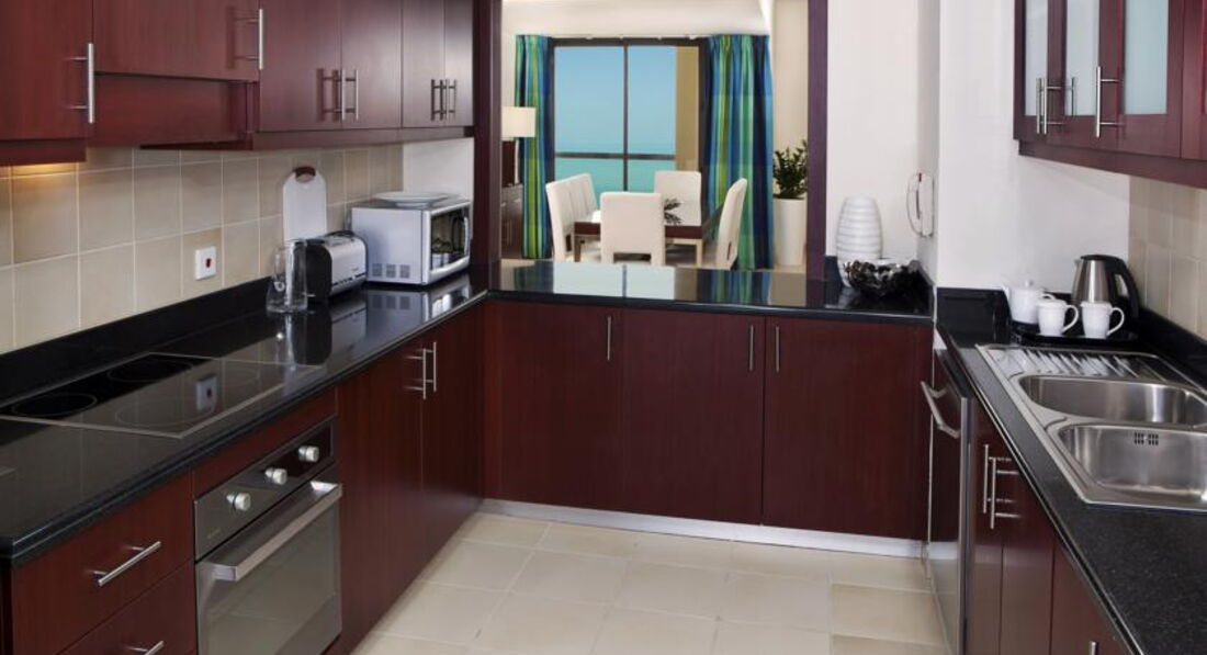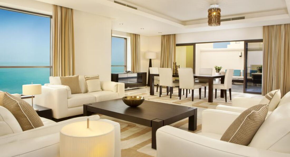 Four Bedroom Courtyard View 6 номерів (262 м2, 4 спальні + вітальня зі столовою зоною (обідній стіл на 8 чол.), кухня (повністю обладнана - пральна машина, посудомийна машина, мікрохвильова піч, холодильник, плита, посуд, столові прилади) + кімната для прислуги, з видом на Дубай Марину, всі номери з балконом, ліжко king-size + twin beds + 2 queen-size bed, 4 ванні кімнати + гостьовий туалет, макс. 8+4 чол.)
