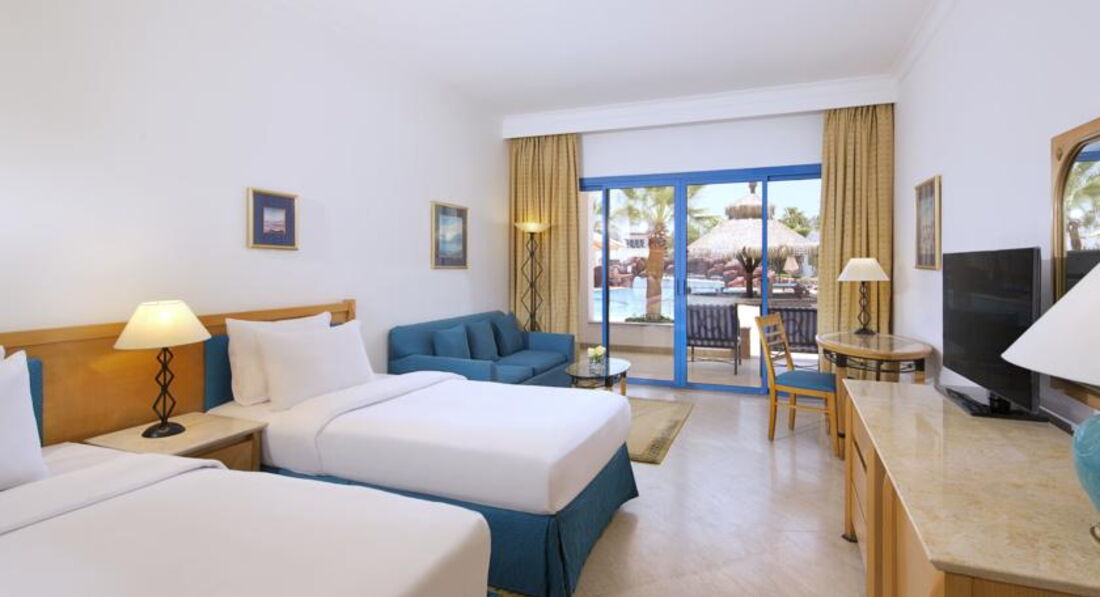 Отель очень старый. Номера расположены в шале по 4 номера и в двухэтажном здании. Много зелени. Мебель в номерах требует обновления. Кондиционеры очень плохие. Белье можно попросить чистое, даже если его не заменили после предыдущих туристов. На ресепшен работники разные, есть наглые и надменные,есть дружелюбные и совестливые. Главный менеджер вникает в проблемы, заменили номер несколько раз. Ресторан небольшой, но питание отличное. Много мяса, рыба на гриле. Пляж чудесный, но используется двумя отелями, поэтому мест бывает маловато. Бар на пляже платный. Для системы All inclusive на пляже нет даже воды. В номерах воду подают при уборке каждый день. Уборка "усердная", то есть заправка кровати и размазывание моющего средства по полу. Горячая вода есть всегда. Wifi платный, дорого. Около ресторана стоит банкомат, но работает плохо. Рядом с отелем отделение банка,отвечающего за этот банкомат, аптека, магазины. До центрального променада Наама-Бей 3-5 минут. Плюс отелю за пляж, питание и красивую территорию. С анимацией особо не встречались, но шоу вечерние были. Много егиитян и туристов из арабских стран.