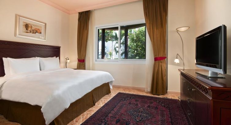 В номере две комфортные двухместные кровати, телевизор - плаза, мини-бар (попросили сразу убрать, поскольку в городе куча маркетов, там все вкуснее наших Сетевых, где соки в пакетах - натуральные, фрукты очень вкусные и т. д. все это надо было где-то хранить). На машине до каждого Маркета ориентировочно - 15 дерхам.