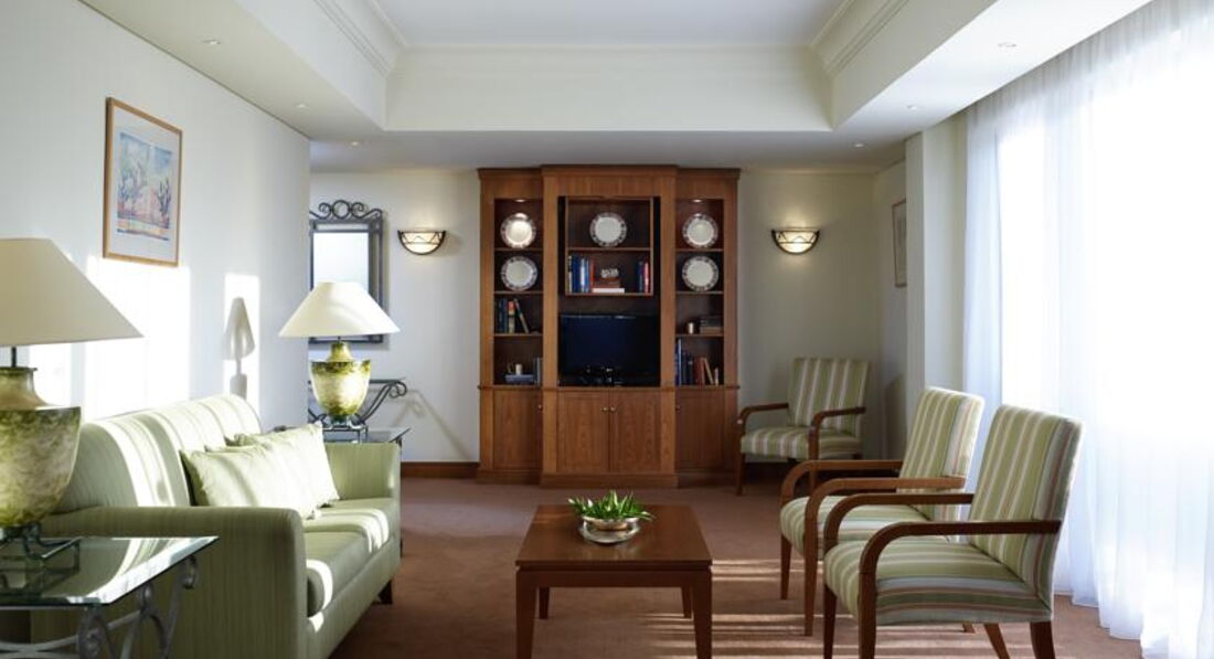 Troodos Suite (67 м2, макс. 2 чол., двокімнатний номер: вітальня з робочою зоною та двома ванними кімнатами, спальня; гості можуть відвідувати представницький лаунж з безкоштовним сніданком та прохолодними напоями),
