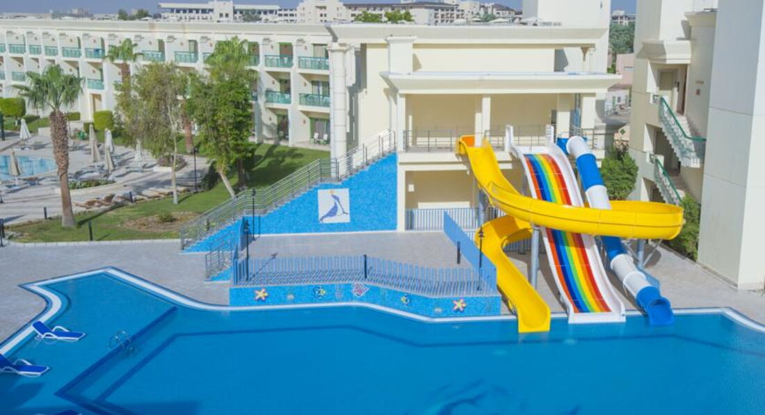 Отдыхали с мужем.Конечно название повлияло на выбор отеля и скидка на тур типа как на отель дня.Все старые отзывы были не сильно хорошие,а все новые хвалили анимацию,питание и пляж.Скажу сразу,что очень мало информации о море было и оно нас слегка разочаровало,так как никаких рифов нет,рыбки были только мелкие,короче насладиться подводным миром тут не получится для этого надо лететь в другой город.А так пляж отличный песочный,вход в море удобный,обувь наверно не нужна,лежаков вроде достаточно,но лучшие места надо занимать рано утром.Короче для семей с маленькими детьми море и пляж отличные.Территория не очень большая,но компактная,бассейны и горки есть,работает детский клуб,анимация работает и на пляже и вечером после ужина,но такая на любителя,не скажу ,что осталась в восторге,но ребята стараются.Советую всем купить местную симку с интернетом,в отеле он есть только на лобби и очень слабый,а вечером,когда собираются много людей,то видео например загрузить не реально.Номер у нас был в основном корпусе,ничего примечательного,убирали каждый день,кровать удобная,сантехника в нормальном состоянии,мебель не новая,но пойдет,да и мы в номере конечно много не сидели.Питание стандартное,никаких экзотических блюд конечно нет,но и голодных мы не видели.Говядина,курица в разном виде,овощи,гарниры много всего,но не так разнообразно как я себе надумала еще дома.Утром как всегда не плохая выпечка,вечером что-то на гриле.Из алкоголя понравилось только пиво, и иногда пили сухое вино.За рыбками и рифами отправились сначала на Райский остров,причем наняли катер только для себя с мужем на двоих,очень романтично.Потом побывали на острове Утопия.Луксор тоже рекомендую,были лет пять назад,а сейчас там открыли новые площадки.Туры заказали по интернету у Mido Bikham ,только там самые низкие цены.Персонал приветливый,никакого хамства,чаевые никто у нас не выпрашивал,на лобби всегда есть русскоговорящий сотрудник.Так что отель считаю,что отель прекрасно подойдет для семей с маленькими детьми и пожилых людей,которых тут не мало,а вот молодежи тут наверно будет скучно,хотя может вам повезет и отдыхающие будут не такие пассивные как ,скажем так , в наш заезд.