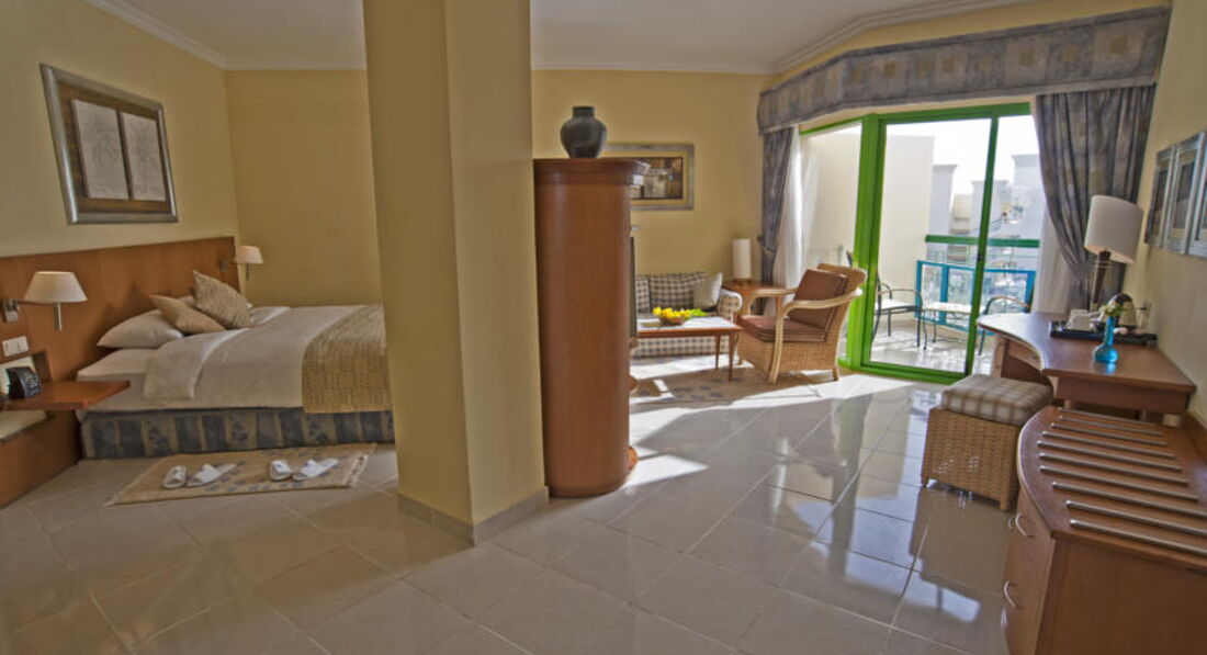 В Египте мы уже бывали, но все время взрослым коллективом, а теперь приехали с ребенком. Выбрали этот отель за его название, местоположение (близко к аэропорту), хороший пляж и инфраструктуру. Приехав в него, сразу почувствовали атмосферу комфорта и высокого уровня сервиса. Номер, мы взяли стандартный, был очень просторный, с огроменной кроватью, кондиционером, большой ванной комнатой, балкон в номере был и довольно большой с видом на море. Попросили дополнительное спальное место для ребенка и нам его без проблем предоставили. Номер нам достался замечательный, сразу почувствовалась атмосфера отдыха. Качество питания в этом отеле лучше, чем в других посещаемых нами отелях. В отеле много ресторанов и баров разной направленности. Очень красиво и вкусно в итальянском, рыбном. В барах предлагают фастфуд и пиво. В основном ресторане – шведский стол, всегда несколько вариантов первых блюд, мяса и гарниров, много овощей и фруктов, соков и напитков. Пляж в этом отеле просто отличный: чистый, ухоженный, песчаный. На пляже много лежаков, было немного ветрено, для этого есть заграждения. Кстати, на пляже есть катамараны и каноэ бесплатно. Для любителей спорта в отеле есть тренажерный зал. Вечерами в нашем отеле проводились детские дискотеки, далее следовали вечерние шоу аниматоров или приглашенных артистов. Меня поразило отношение всего персонала, очень дружелюбное, даже слишком. Хочу отметить необыкновенную чистоту и порядок везде: в номерах, на территории.