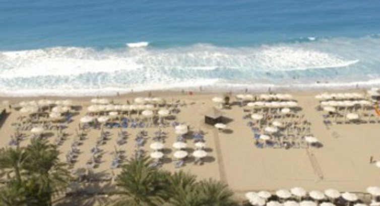 Пляж широкий, чистый, вход в море удобный, вода чистая. Полотенца выдают без ограничений, сколько требуется ( будочка между бассейном и пляжем). Лежаков на пляже всегда было достаточно, но стоят они очень близко друг к другу. На пляже работает бар, можно заказать как напитки, так и еду и покушать прямо на лежаке. У бассейна мест практически не бывало, но можно немного подождать, присесть у бара, попить-поесть что-нибудь. Лежаки часто освобождаются, дети маленькие быстро устают и люди уходят. После обеда у бассейна тень, хорошо зайти после пляжа, охладиться.