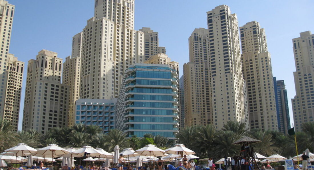 Три дня назад вернулись из Дубаи. Пишу сразу по приезду, пока свежи воспоминания. Отдыхали в отеле "Хилтон Джумейра Резорт" 2 недели. Июнь в ОАЭ не считается высоким сезоном для массового отдыха, но видя огромное количество отдыхающих, начинаешь в этом сомневаться. Температура воздуха колебалась от +38 до +42, два дня было +45, но в ОАЭ не такая высокая влажность как на средиземноморье, поэтому жара переносится вполне сносно. Конечно, по улицам ходить тяжеловато, но зато везде всё кондиционируется (в помещениях, в транспорте и т.д.). Вода в Персидском заливе просто супер (примерно + 34-35). Можно купаться с утра до вечера. Несколько дней немного штормило, но когда был штиль - просто сказка. Вход в море достаточно пологий, особенно во время отлива. Песочек на пляже очень светлый, поэтому море у берега светло бирюзового цвета. Пляж каждый день тщательно убирается, песок заглаживается. Полотенца персонал помогает расстелить (полотенца выдают по дороге на пляж по карточкам). Правда в связи с началом ЧМ по футболу испытали некоторые неудобства. На пляже установили большой монитор, и начиная с вечера там в ресторане и за расставленными рядом с монитором столиками собирались футбольные фанаты. Что там было утром, лучше не вспоминать. Уборщики пляжа собирали огромные мешки мусора. Конечно, лучше бы они это делали сразу по окончании матчей, а не ждали того времени, когда туристы (не футбольные фанаты) пойдут утром на пляж.