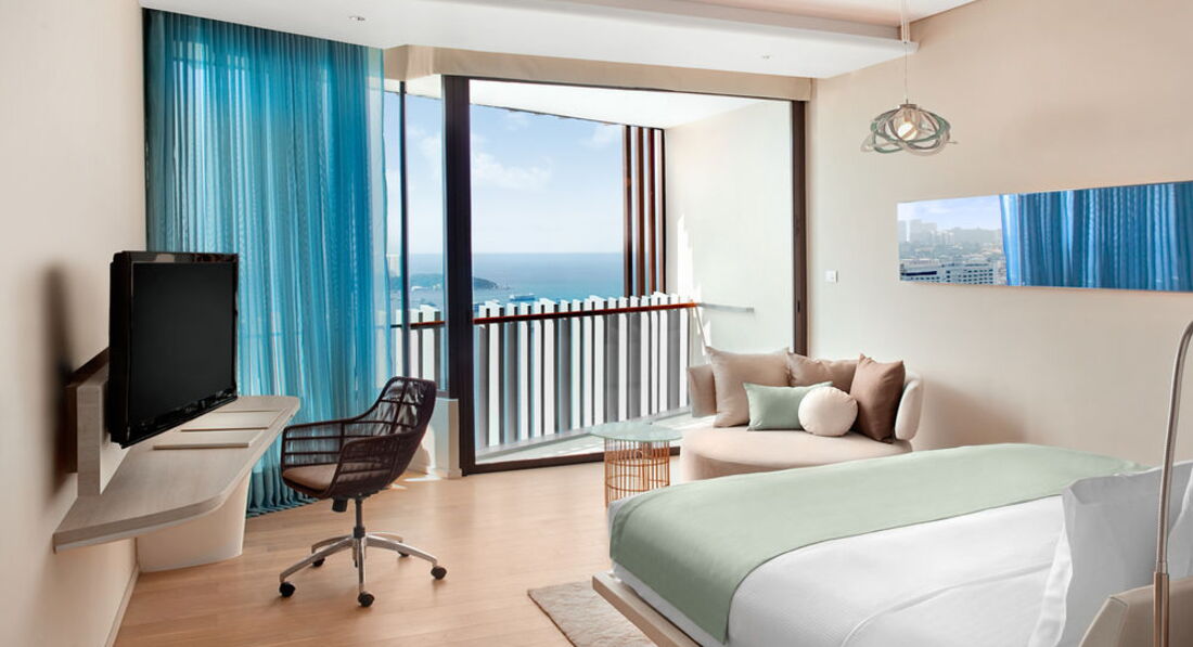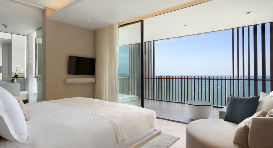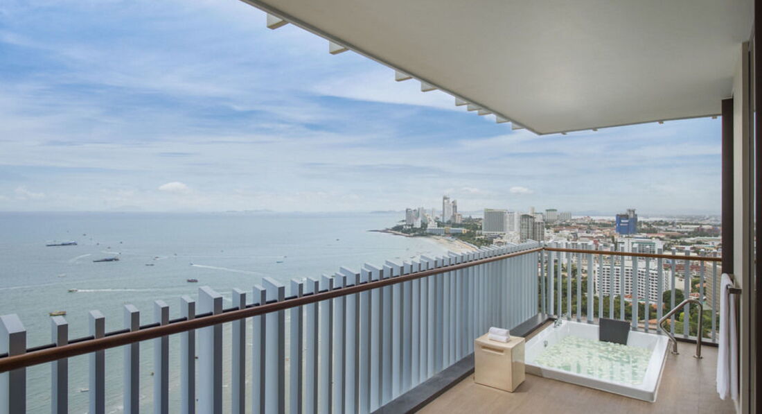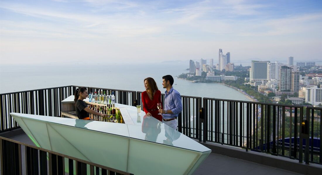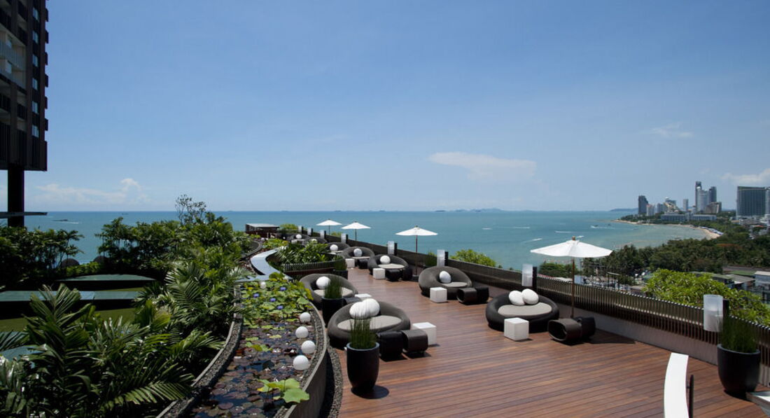 Прекрасный современный отель. Мы останавливались в нем на 3 ночи по пути на о. Чанг. Отель расположен над крупнейшим в Паттайе новым торговом центром Festival. Собственно сам отель начинается с 16 этажа, из холла отеля на лифте можно спуститься в сам торговый центр. До известной Волкинг стрит 15 минут пешком, соответственно до пирса, с которого кораблики уходят на Ко Лан, минут 20. Все номера очень хорошо оборудованы и имеют вид на море и город. У нас был номер категории De Luxe plus, с прямым видом на море с большой террасы, на которой располагалась огромная ванна, из душа также был панорамный вид на море и город. Очень понравилось. что вместо шкафа в номере была небольшая гардеробная. Очень удобная кровать, прекрасные постельные принадлежности. Отличные завтраки, включающие разнообразные свежевыжатые соки, очень хороший кофе (эспрессо, капучино, латте и т.д.), прекрасная свежайшая выпечка. С террасы ресторана. в котором проходят завтраки открывается прекрасный вид. Очень красиво оформленный бассейн, с удобными мини-беседками для отдыха. Единственным минусом бассейна на момент нашего пребывания была весьма и весьма холодная вода, т.к. бассейн практически все время находится в тени, да еще и на 16 этаже, но если бы у нас в номере не было бы собственной террасы с кроватью для дневного отдыха, думаю что у бассейна мы проводили бы много времени. Очень хорошо работает ресепшен, необыкновенно быстрый chek-out даже при большом наплыве выезжающих постояльцев. Все в отеле сделано так, что просто не можешь не расслабиться, из него не хочется выходить.