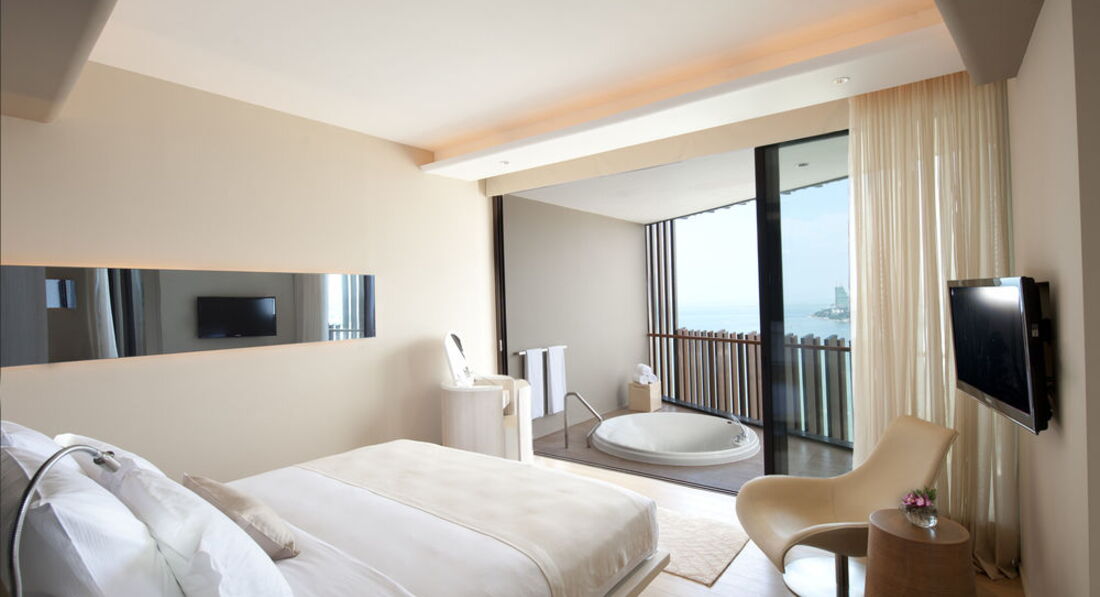 Два дня назад приехали из этого отеля-все супер!Брали номер king suit sea view(королевский суит) на троих взрослых в самый раз,вот только один санузел напрягал,хорошо что и душ был,и ванная,да и два умывальника были уместны.На ресепшн работают две русских девушки-обе Натальи,приветливы и внимательны,одна из них особенно помогла нам при конфликте с лаунж-менеджером(та хотела при выписке содрать с нас лишние деньги за услуги клубной зоны,обязательно требуйте дубликат подписанных чеков!).Лежаков действительно не так много,но найти всегда можно было(их полно на террасе-солярии,а все хотели занять кабинки-коконы),фитнес-клуб хоть и небольшой,но работает 24 часа и дорожки новейшие Precor,вообще отель считается лучшим в номинации"Архитектурный дизайн-отель Таиланда 2011",рекомендую разборчивым и требовательным путешественникам.А пляж у отеля кстати ничем не хуже пляжа островаКо-Лан и Самет(были там и волной прибивало иной побольше грязи к берегу) просто если про грязное море в Паттайе не говорить,то кто поедет на эти острова?