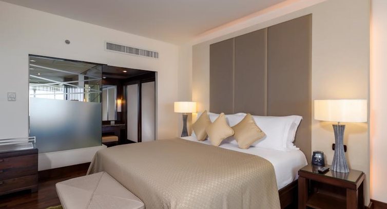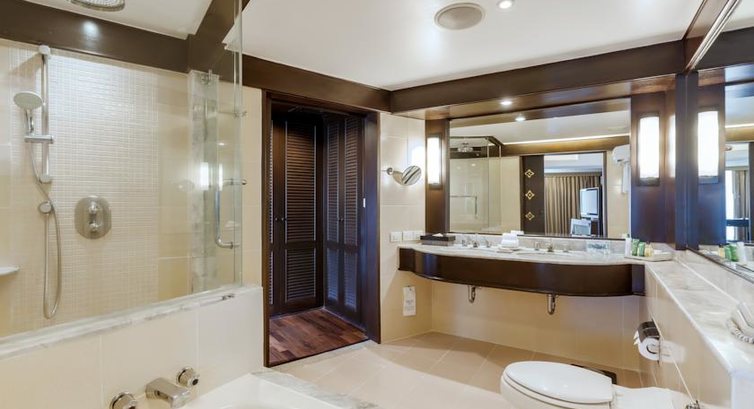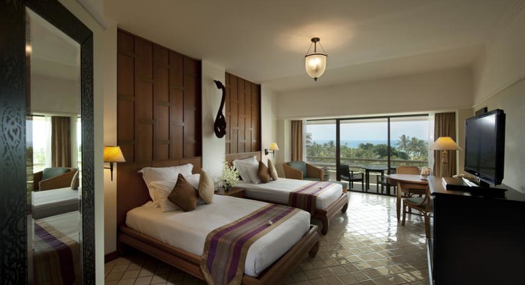 К отелю нет никаких претензий. По стоимости к качеству отлично. И так заселение. Берут 500 баксов но можно и в местной валюте договорится. В номер поселили почти сразу ждать не пришлось номер был готов. Если вы захотите сменить номер это не проблема но мы не меняли все устроило. Мебель в хорошем состоянии конечно не новая но и не обшарпанная. Ванная просторная. Есть и душ и полноценная ванная. В номере есть все что нужно и даже утюг с доской для глажки. Сейф бесплатно. Минибар платный и можно при заселении попросить его убрать. И использовать просто как холодильничек. Территория очень зеленая и большая пять бассейнов. Лежаков много. Во всех бассейнах есть детские зоны. Самый загруженный бассейн был тот что близко от моря всего метров пятдесят. На территории есть две площадки для детишек. Хороший спорт зал. Отличный спа. На территории есть два пруда поросших травой их там вроде лагунами называют) Места погулять полно но и можно не ходить пешком по отелю ездят шатлы. Питание отличное у нас были завтраки. Так вот можете переусердствовать и будет лень куда либо идти. Потому что завтраки очень обильные выбор можно сказать огромный. Несколько видов кухни. Тайская, европейская и азиатская. А вот чай, кофе ужасные. Но если попросите вам принесут капучино либо экспрессо. Но думаю за ту стоимость что обошелся тур все просто отлично. Подбор тура мы полностью доверили турагенту и не чуть не ошиблись. Зовут его дмитрий кукин легко найти по имени в соц сети вконтакте или инстаграм @dima_tour. У него самые дешевые цены в интернете дешевле мы не нашли. Пляж ну уже много расписано. По сути через дорогу от отеля займет минуты две. Лежаки в ареду взять не вопрос. Ну и все что могу сказать про отель.
