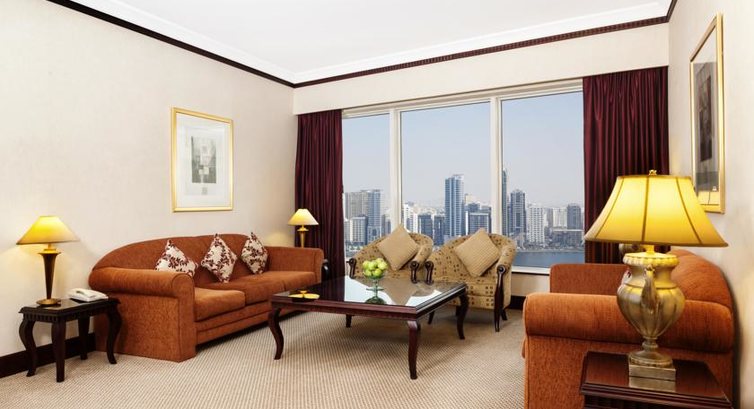 Отдыхали вдвоем с дочерью в апреле 2017 года.В ОАЭ впервые, переживали по поводу строгих законов эмирата Шарджа(колебались между Дубаем),но все было хорошо.Встреча и заселение прошли быстро,да еще и без депозита обошлось.Номер был на 7 этаже с видом на город.Если честно были удивлены стареньким номерным фондом,ожидали от отеля с таким громким названием немного большего,но для нас главным плюсом была большая площадь и удобство кровати,так как много времени проводили вне его.Призыв на молитву в мечети прямо перед окнами вовсе не напрягал,а даже,наоборот, нравился-в эти минуты особенно чувствовалось присутствие в Арабской стране.