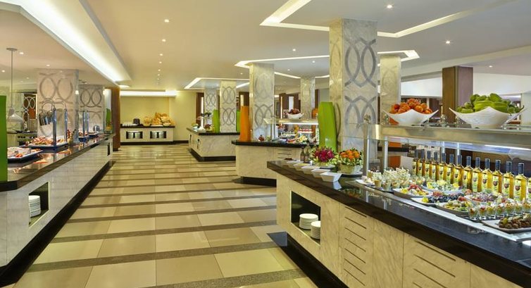 Ресторан на второй линии, почти всё время очень спокойный, там нет такой толкучки как на первой, за исключением одного дня, когда было массовое заселение на вторую линию, но это продолжалось всего пару дней. Питание в целом лучше, чем в прошлом году. Особой разницы между первой и второй линиями нет, но выпечка лучше на второй линии. Присутствовали утром несколько видов йогуртов, сыров, колбасы, хлопья, яичницы, блинчики. На обед и ужин несколько видов мяса, зелень, салаты, фрукты, выпечка. Все неплохо приготовлено, кроме рыбы. Из фруктов: гранаты, дыня, хурма, финики, яблоки, апельсины, гейпфрукты, бананы, гуава. В целом качество питания тянет на «хорошо». Выбор есть всегда!