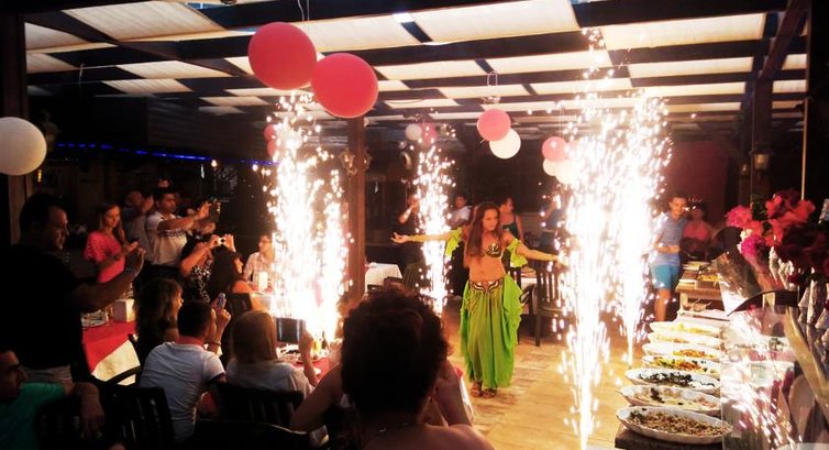 2. ПИТАНИЕ: не хватало мяса, курица была раз в два дня, за ней всегда были очереди. Фруктов мало. В основном упор был на овощи. Были наивкуснейшие тортики!!!Из алкоголя пили белое вино, пиво разбавленное, красное вино вообще ужас,есть водка раки. Выдают алкоголь маленькими дозами. Ближе к 22.30 все бегали от бара к своему столику и набирали стаканчики, дабы набрать необходимый объем. Смотреть и участвовать в этих соревнованиях было весело.