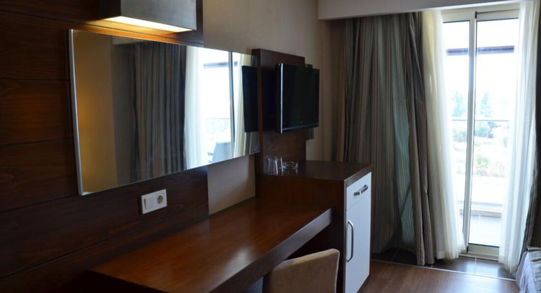 В номере телефон не работал не сколько раз давал заявку так не чего не сделали. Воду питьевую в номер не приносили, тапочек нет. Отель только открылся после зимы, народу мало было, анимации не днем не вечером, еда не разнообразная, хваленных турецких шашлыков не было, два раза на ужин давали жаренное сердце, рыба была тоже два раза один раз скумбрия, напитки чай кофе соки избытки. Спиртное турецкое было все но один раз сотрудника увидели как в бутылку из под кокосового ликера налил другой. Сотрудники представали с вопросом кто я по нации. Своего пляжа нет, а там где выделена территория для этого отеля нет нормальных лежаков, матросы и полотенца платные. поэтому ходили на другие пляжи. Дискотека при отеле еще была на ремонте, скукота полная. Предлагали на другие отвезти. Поехали молодые люди с нашего отеля а там им что то налили что плохо стало и вернулись в отель. Территории своей практический нет. Отель выходит на центральную дорогу ночью слышно как машины ездят, первые этажи сданы в аренду под магазины. Тент на лежаками возле отеля не натянули. Больше я туда не поеду.
