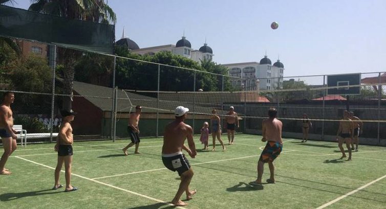 Есть тренажерный зал, волейбольная площадка, и дартс. 3 водных горки. Аниматоры веселые не навязчивые , каждый день новое вечернее шоу после детской анимации.