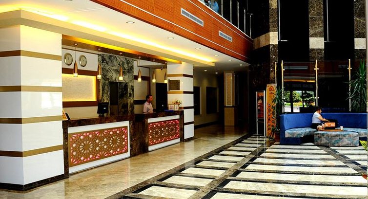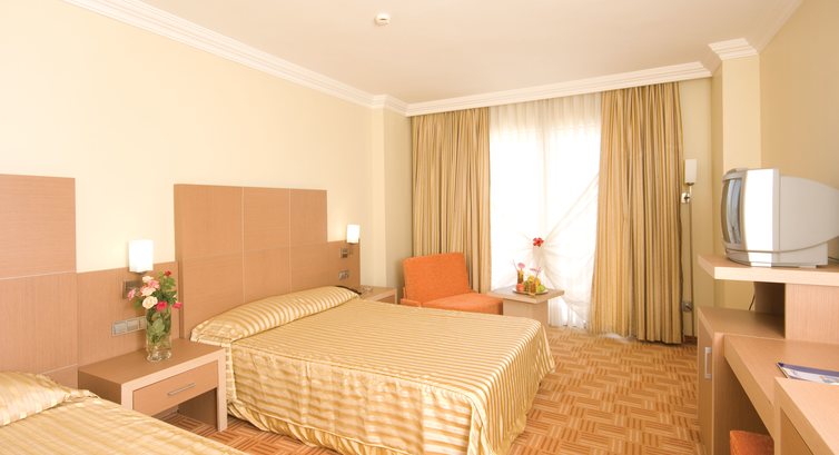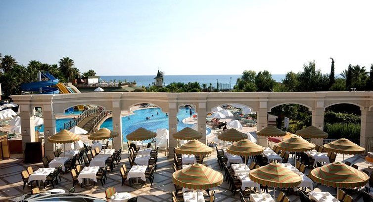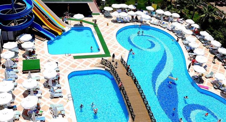 Доброго времени суток друзья!мы ездили вдвоём,по прибытию сразу заселили в номер,ждать на пришлось!за дополнительную плату в 10 долларов дали номер на предпоследнем этаже с видом на бассейн и море.территория ухоженная,большой бассейн и для детей имеется,мини аквапарк,кафе возле моря,пляж хороший,далеко идти не надо,рукой подать)))кормят до отвала,мы предпочитали гриль,овощи и простой гарнир,с подливой из томатов ничего брать не советую,один день валялась в номере((((не так далеко большой рынок,можно там себе что-нибудь присмотреть,так же в отеле имеется магазин в котором можно взять что-то необходимое.детям по вечерам в амфитеатре устраивают развлекухи,но а для взрослых доступен ночной бесплатный клуб,но народу там не особо.так же ещё есть хамам бесплатный,баня.массаж за отдельную плату.плохого ничего сказать не могу,но!отель по сути 4ре звезды был на тот момент когда ездили,а заявлен был как 5звёздочный.В остальном нам всё понравилось!