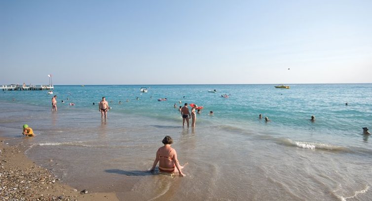 5. Пляж маленький, галечный, надо брать с собой тапки для плавания (как в Египте). При полной загрузке отеля пляжа не хватит даже на 1/4 желающих.