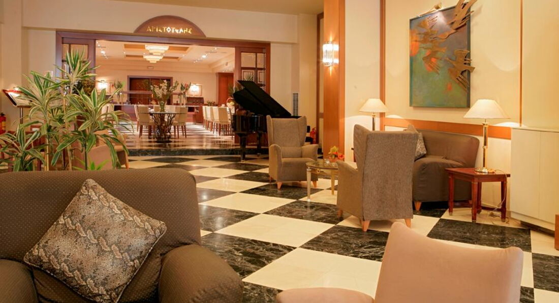 Готель розташований у самому центрі міста, недалеко від центральної вулиці міста з безліччю магазинів, торгових центрів та кафе. Вибір комфортних номерів, ресторан, кафе, піано-бар, інтернет, тренажерний зал, 5 конференц-залів, обслуговування номерів, сервіс високого класу. За кілька хвилин ходьби від готелю розташований порт міста та популярний район Лададіка, з традиційними грецькими тавернами.