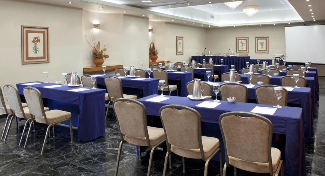 Територія та послуги: Автостоянка – підземна автостоянка (за доплату) Інтернет: Wi-Fi інтернет у заг. місцях та в номерах – безкоштовно Конференц-зал: 5 конференц-залів (до 600 місць), секретарські послуги, комп'ютер з доступом в інтернет Сейф у номері – безкоштовно Пральня Бар Кафе Ресторан Розміщення з тваринами до 5 кг - на запит Російськомовний персонал Умови для інвалідів - номери на запит Розваги та спорт: Тренажерний зал Для дітей: Няня за запитом Живлення: Сніданок (BB), Сніданок, вечеря (HB) Пляж: Найближчий пляж Агія Тріада за 20 км. До оплати приймаються кредитні картки: Visa, MasterCard, Amex, Diners.