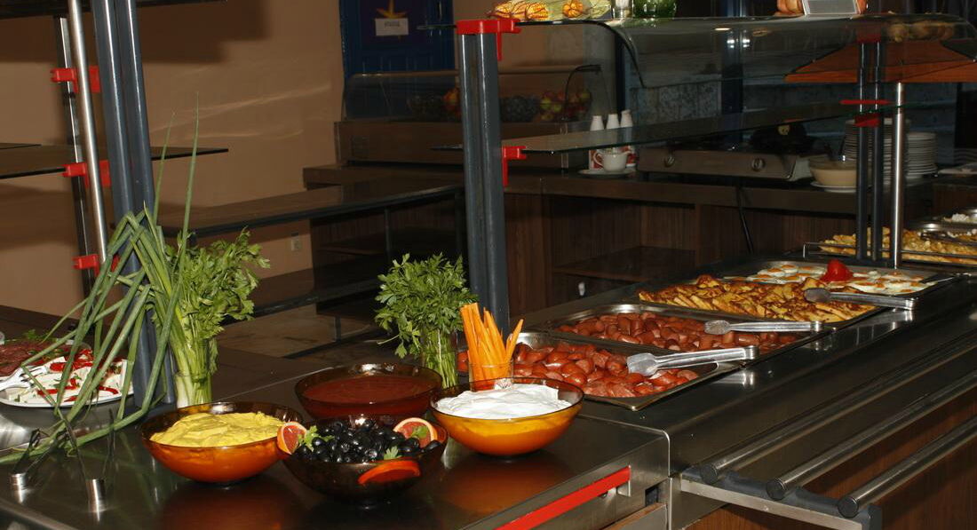 К питанию претензий нет - мы брали только завтраки. так вот, там было все необходимое, вряд ли кто-то ест на завтрак что-то экзотическое. Удивило только отсутствие болгарского перца (воспоминания об отеле в Албене, где его всегда было вдлволь). Ужины не брали, один раз попробовали поужинать в отеле, потом пожалели - на 32 лева за 2-х мы бы прекрасно поужинали с дарами моря.