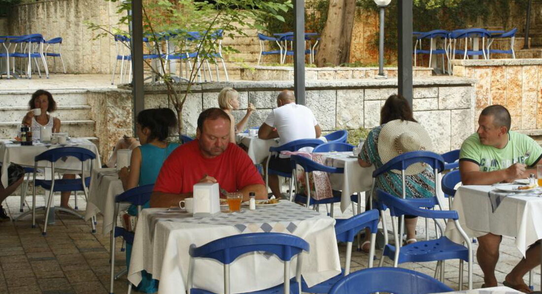 Мы брали путевку только на завтраках - это было очень правильным решением. Невкусно совершенно. Даже блины резиновые, что зависит от теста. Явная экономия на всем. Голодными наверное никто (исключая мужчин) не уходил, но удовольствия абсолютно никакого, хотя вообще в Болгарии довольно прилично кормят в ресторанчиках. Еще и духота в помещение ресторана. Лучше завтракать на улице (правда осы достают).