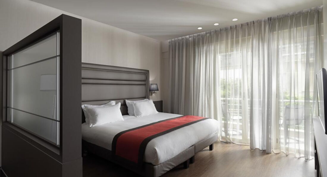 •декоративно відокремлене двоспальне ліжко королівських розмірів,