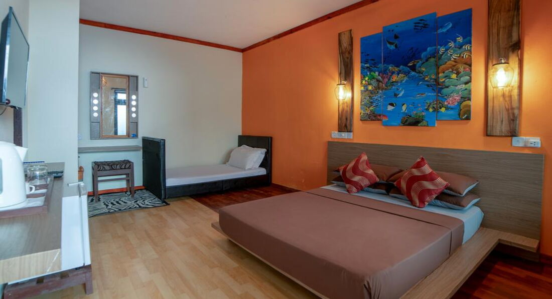 • Deluxe Family Room Garden View Спальня обладнана одним двоспальним та односпальним ліжками, шафами з вішалками, високоякісною бавовняною протиалергічною постільною білизною. У номері є простора ванна кімната.