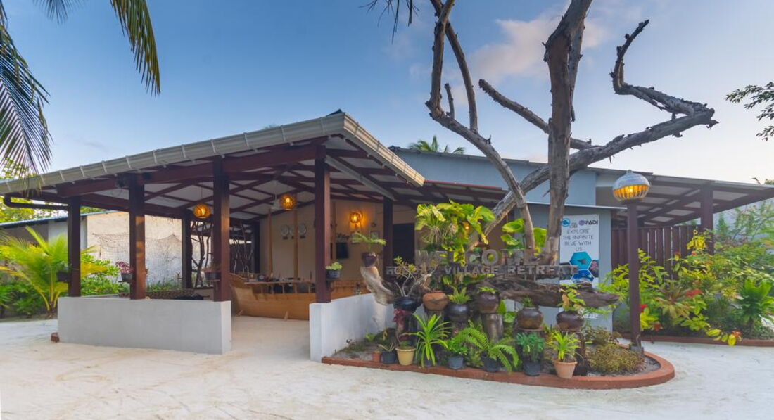 Holiday Village Retreat з видом на море розташований на острові Бодуфолуду. До послуг гостей приватний пляж та безкоштовний прокат велосипедів. До послуг гостей сад і номери з кондиціонером, безкоштовним Wi-Fi і власною ванною кімнатою. У ресторані готелю подають страви китайської та азіатської кухні. У кожному номері є балкон з видом на сад. В усіх номерах готелю Holiday Village Retreat є вітальня. Щоранку сервірується сніданок «шведський стіл» з континентальними стравами. На території облаштовано дитячий майданчик. У комплексі Holiday Village Retreat можна пограти у дартс. Співробітники цілодобової стійки реєстрації нададуть інформацію про регіон.