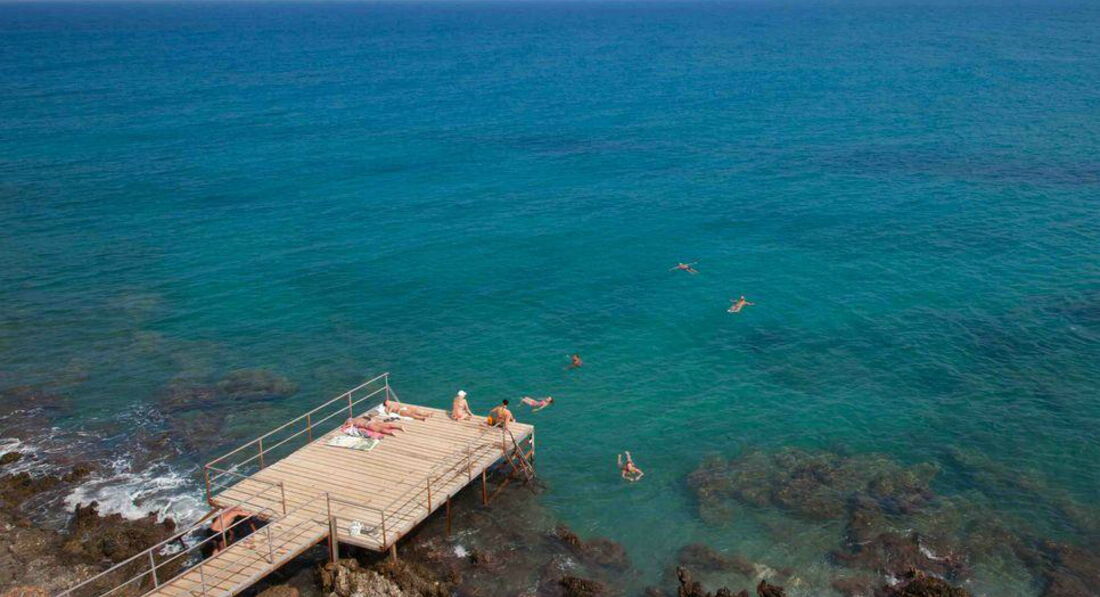 скелястий берег, спуск сходами, є приватна платформа з прямим виходом на море