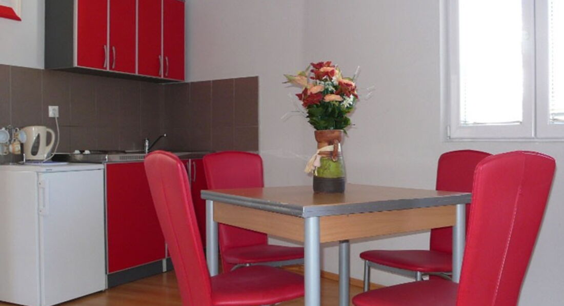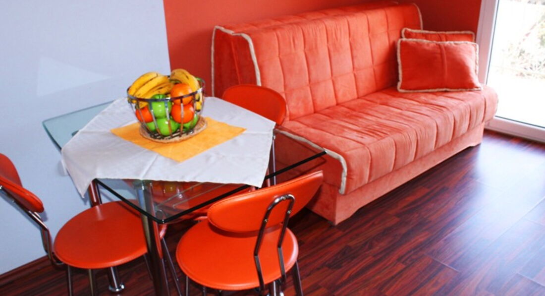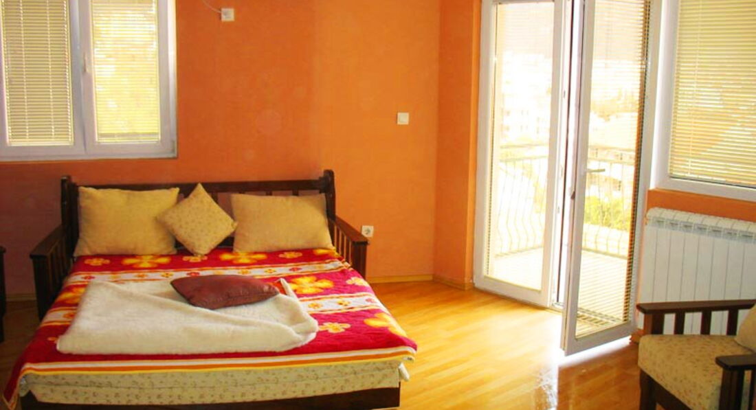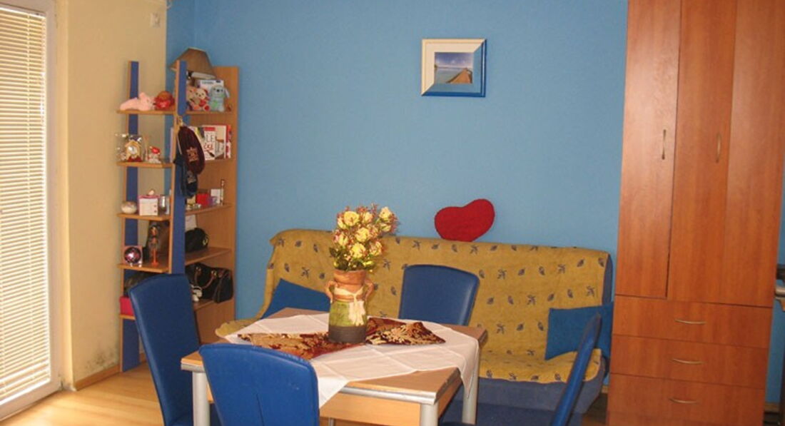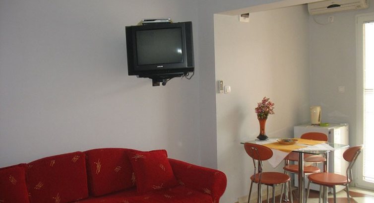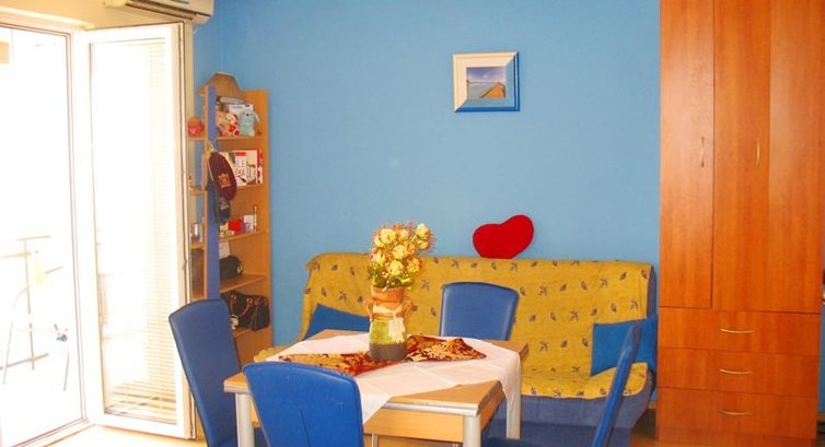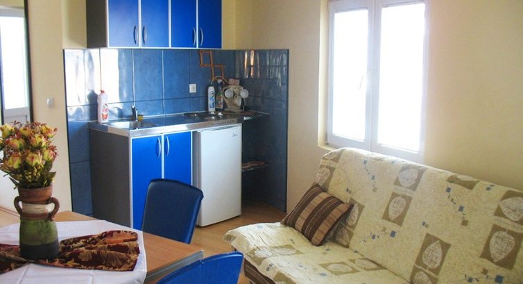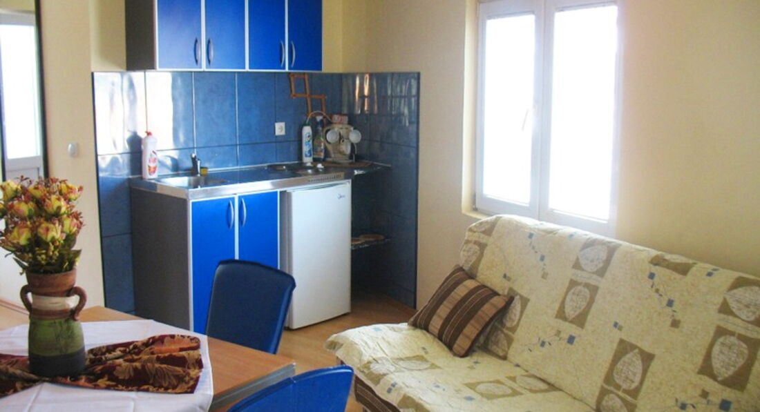 Apartment 05 – 50 кв.м., дві кімнати: спальня з французьким ліжком та спальня поєднана з кухнею з французьким та додатковим ліжком, балкон з видом на море.
