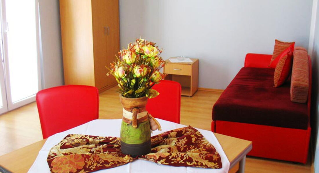 Studio 03 – близько 30 кв. , тераса 7 кв. м., окрема кухня, французьке та додаткове ліжко, балкон.