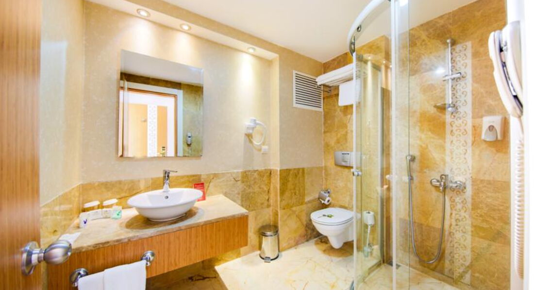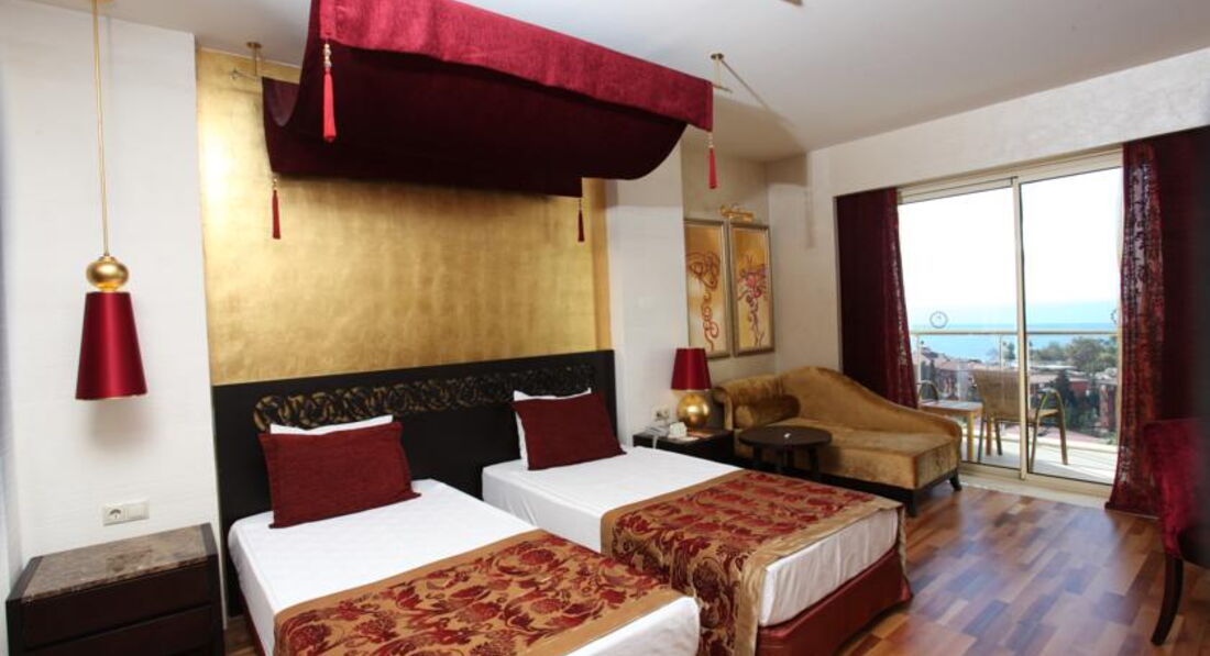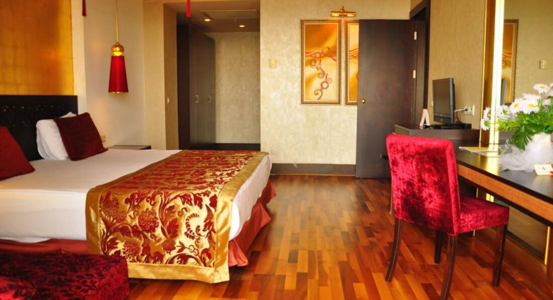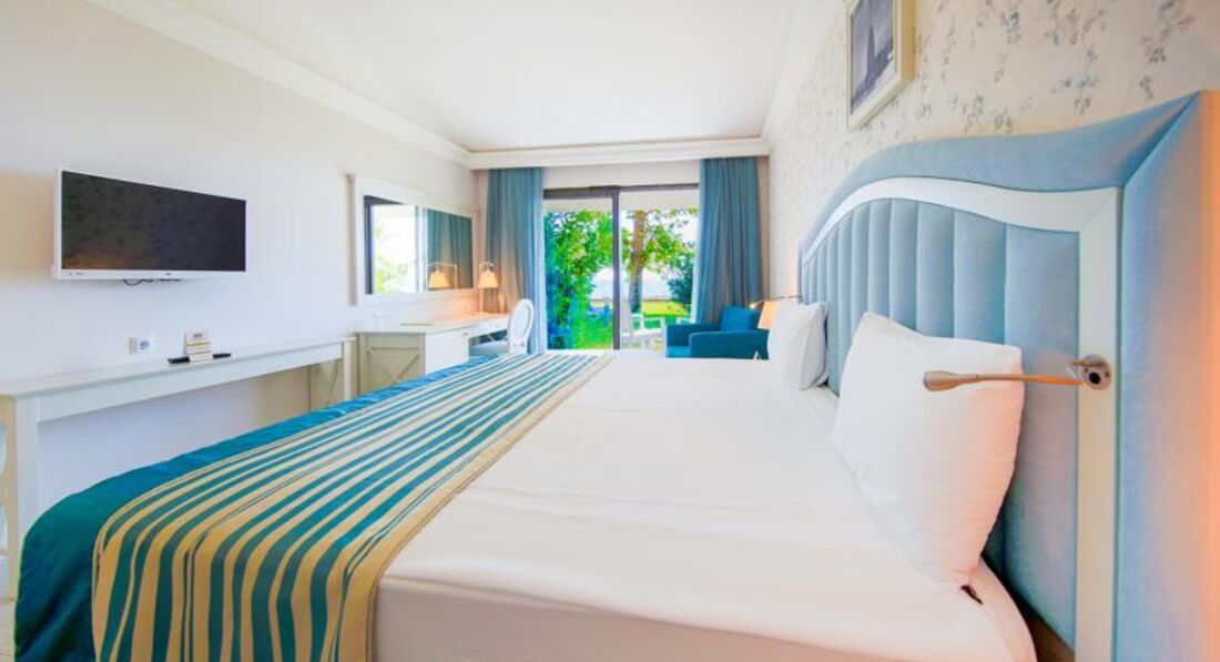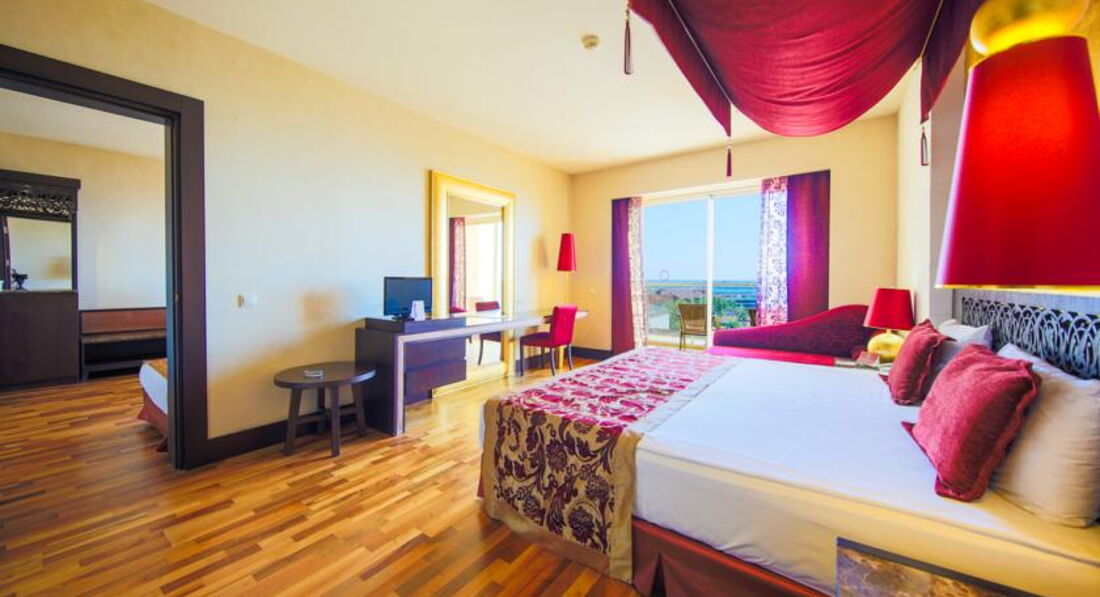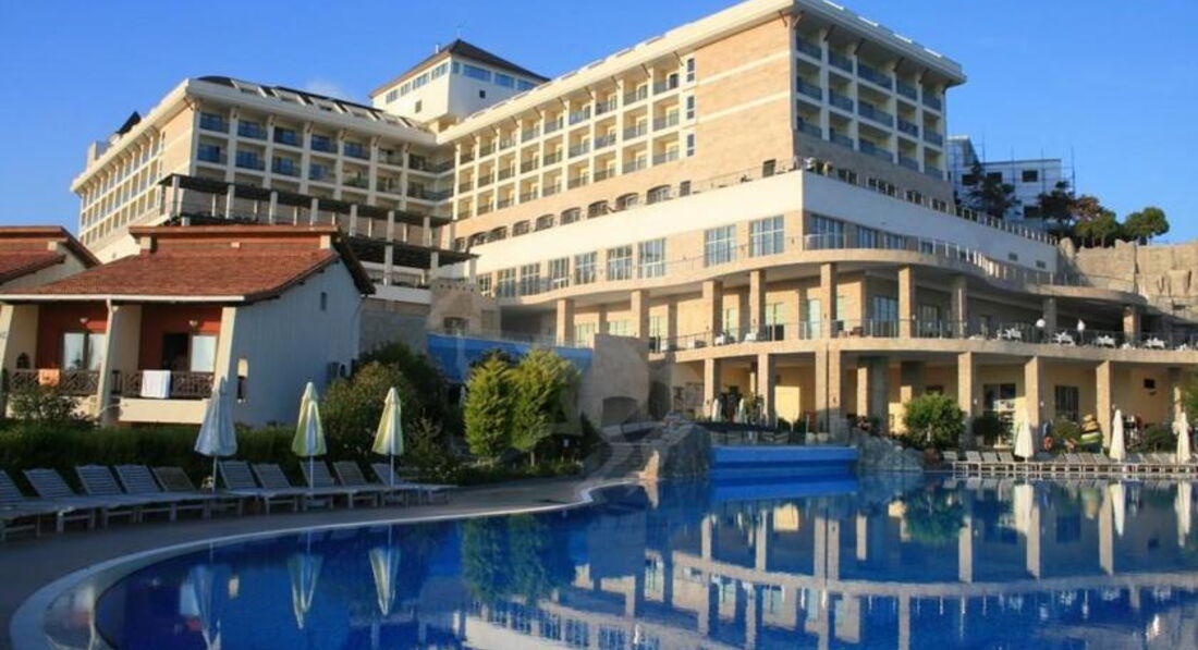 Отдыхала в отеле с 18 по 25 мая 2017 года с приятельницей и её взрослой дочерью. Расселили сразу же в трёхместный номер с тремя кроватями в главном здании. Главное здание помпезное в египетском стиле. Номер большой , уютный. Порадовало паркетное покрытие пола. Правда , освещение совсем интимное, потом привыкли. Каждый день давали чаевые, поэтому убирались в номере качественно и меняли все вовремя. Как и писали многие, напрягало количество людей в ресторане , приехавших на конференции, причём с 19 по 22 было много женщин в черных облачениях, которые в ресторанах брали все руками( могли положить обратно). Одна вообще попробовала половником суп, облизала его и положила в кастрюлю. Потом приехали дети на какой-то фестиваль одаренных и ситуация уже была гораздо приятнее. Количество людей осложняло ситуацию только в ресторанах, на пляже все было свободно. За мясом люди стояли в очереди, но мы всегда находили альтернативу и нам было с едой норм. Сладостей было очень много и вкусно , на завтрак был очень большой выбор вкусных булочек. Так как раньше я отдыхала в дорогих отелях, поначалу много чего бесило. Но , посчитав сколько стоит пребывание в этом отеле, можно все оценить на отлично. . Персонал доброжелательный, анимация есть и детская и взрослая. Очень комфортный Спа в отеле, массажи недешевые , но очень качественные. Можно торговаться. Из минусов- кондиционер в номере общей системы регулирования-включали только вечером, ночью выключали. Погода была очень комфортная, поэтому мы ночью спали с открытым окном и нам это не мешало, а вот как будет дальше-не знаю. В общем, цена -качество , я считаю по высшему балу, Если бы не было ортодоксальных конференций, вообще бы было супер! Но всем надо выживать в этом повсеместном кризисе , поэтому и с этим можно смириться. Посему, мы только выражаем благодарность всему персоналу отеля! А вообще, есть рабочее правило: как ты к людям, так и они к тебе. Турки очень доброжелательные люди. Я отдыхала в Турции более десятка раз и всегда оставалась довольна отдыхом.