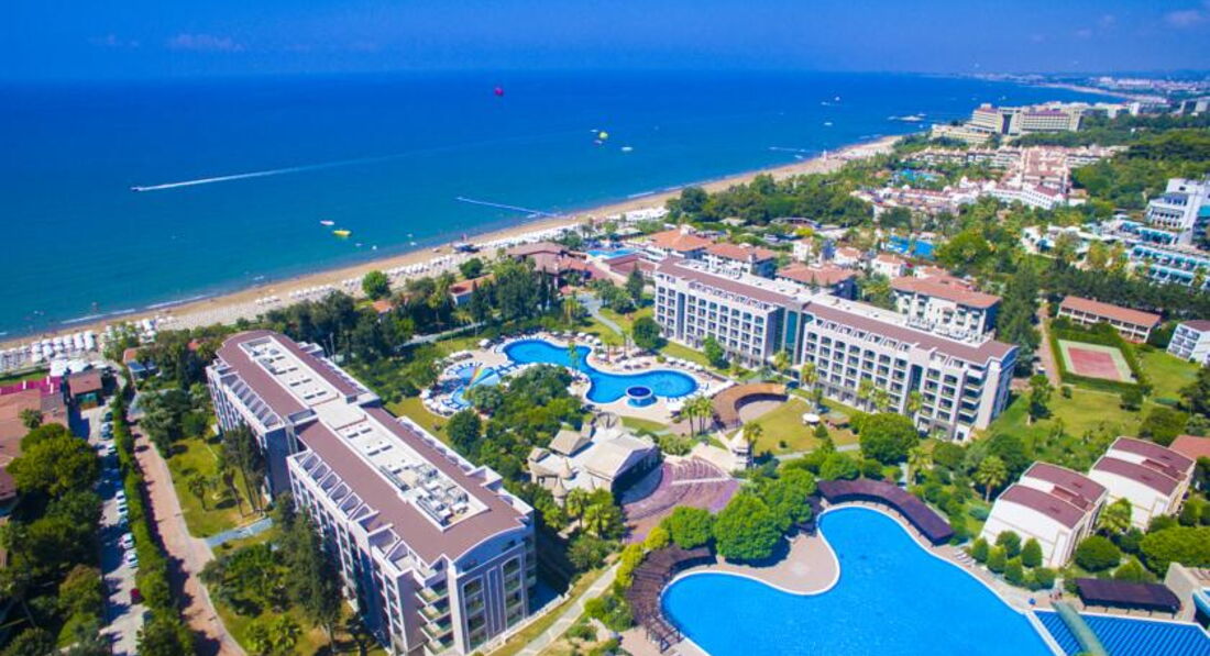 Отель понравился. Очень большая, красивая, ухоженная, зеленая территория. Номер у нас был resort, двух бедрум, с видом на море и на бассейн, с огромной террасой (правда, по приезду нам дали не тот, но на след. день поменяли),все новое, чисто, убирались не плохо. Еда была вкусная, всего было достаточно, и суши, и морепродукты, и шашлык с баранины, фруктов было валом и т.д. Пляж большой, но места на шезлонгах все равно не хватало, так как люди занимают на весь день полотенцем, а сами сидят на бассейнах, удивительный народ... Туристов в отеле очень много, это пожалуй единственный минус. 95% отдыхающих- русские, остальные-украинцы, немцы, турки.
