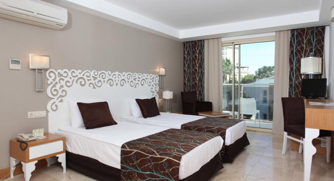 Жил с 18.05 по 22.05 специально приехал посмотреть гостиницу так как хотели предлагать своим клиентам. Жил в главном здании, комната 5238 супериор с видом на море. Номер хороший, но ТВ старый и вообше не работал, на заявку на ремонт ТВ так за 4 дня никто не отреагировал. Номер не убирался, только менялись полотенца, справно забирались чаевые и конечно была приветлива. С едой напряжёнка, если придти позже, то пустые стенды, мороженое выдают один раз в день с 16:00 до 17:00 в ресторане у моря - 2 бокса, кто успеет, тот достанет. Из фруктов в мой период отдыха были апельсины и прошлогодние яблоки. Интернет в номере катастрофа, на территории и на пляже отсутствует. Но есть и плюсы - отличное расположение, прекрасный пляж с пологим входом, до старого Сиде 2 км. Анимация никакая и только по вечерам. В лобби баре обслуживание никакое, так называемые импортные напитки надо выпрашивать, официанты в этом баре имеют рабочее время отличное от времени работы бара. Отель не советую, есть отели более лучшие рядом, даже 3*.