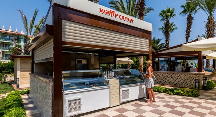Хочу отметить обслуживание персонала. В ресторане официанты вокруг тебя порхают. Заказы выполняются моментально, тарелки грязные убираются, подходят спрашивают не нужно ли что-нибудь ещё. Очень доброжелательные, улыбаются, стараются говорить на русском. Если тебя не понимают приведут человека который более менее понимает по-русски и выполнят твою просьбу. Питание хорошее. Без изысков. Каждый себе может найти еду по вкусу не только на ужин но и на завтрак и обед. Фаст фуды не ели. Гёзлеме ели один раз с творогом и зеленью нормально. Один раз ела вафли очень калорийно больше не рискнула. Мороженое с 11 часов 6 видов можно в креманку брать пробовать все. Там же стоят различные топинги можно самим добавлять.