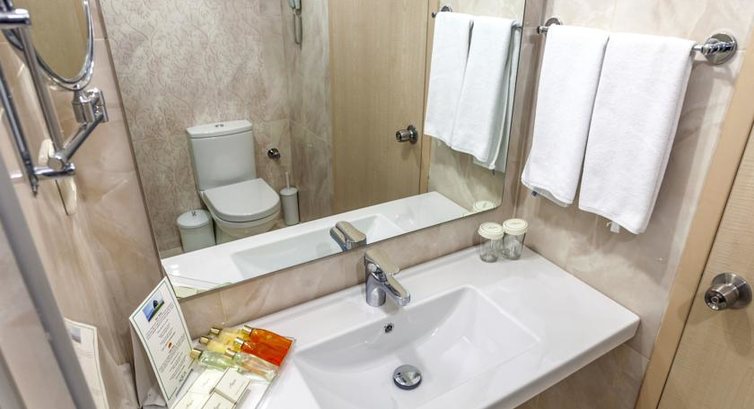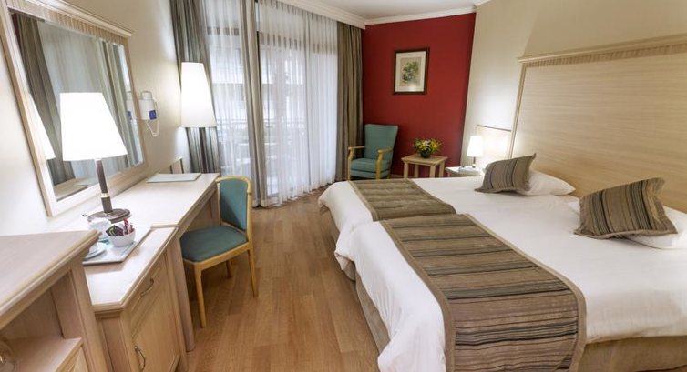 Нам достался номер 143 с видом на деревья и соседний отель :-). Видом, конечно, мы не остались довольны, но сам номер вполне хорош: чистый, уютный. Мы ненавязчиво попросили поменять номер, но нам отказали, аргументируя тем, что все номера заняты, деньги предлагать не стали, ругаться тоже. На следующий день наш гид сказала, что в этом отеле деньгами сложно поменять номер, и если бы были номера, то мы могли бы договориться. За день пребывания мы оценили все плюсы выданной нам комнаты. До пляжа, бани и ресторана нам было ближе всех :-), в случае неработы лифта (а такое случалось), нам не требовалось подниматься высоко на 3-4 этажи или идти к другому лифту :-). Этим и успокоились.