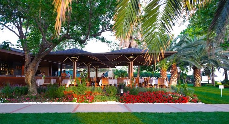 Бари та ресторани: головний ресторан розрахований на 650 осіб (критий з кондиціонером та літньою терасою, дитяче меню, дієтичне меню, дитячі крісла), лобі-бар, бар біля басейну, бар на пляжі, диско-бар та ін., 3 ресторани A la Carte: китайська, італійська, турецька – безкоштовні 1 раз на тиждень, за попередньою резервацією столика.