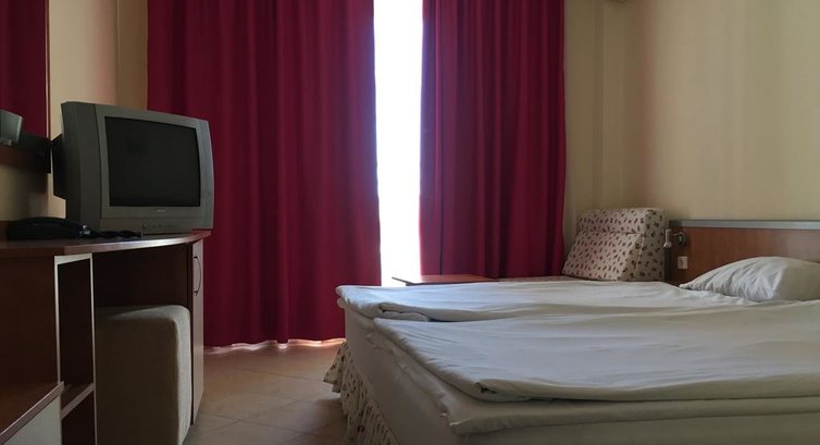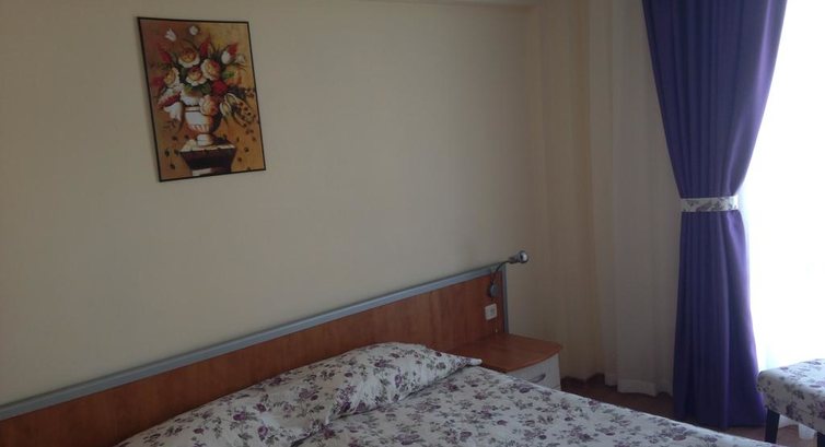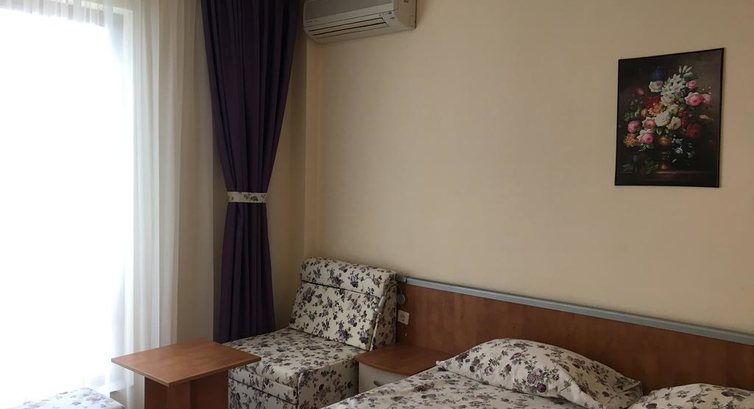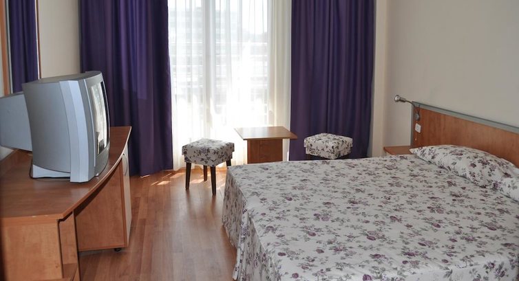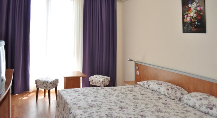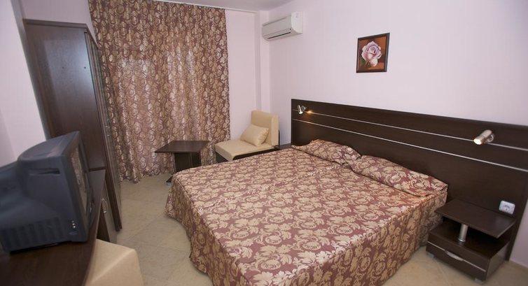 • душова кабіна • кондиціонер • фен • рушники • телевізор • холодильник • безкоштовний Wi-Fi • балкон Територія та послуги: • ресторан на 80 місць • безкоштовний Wi-Fi на території готелю • обмін валюти • камера зберігання на ресепшені (5 BGN/добу) • пральня • оренда автомобілів • праска на ресепшені Живлення: • BB – сніданок (чай, кава, соки) • HB - сніданок та вечеря (фанта, кола, спрайт (1 склянка) Пляж: Муніципальний піщаний пляж розташований за 150 м від готелю. Парасольки, шезлонги – платно. До оплати приймаються кредитні картки: Master Card, Visa.