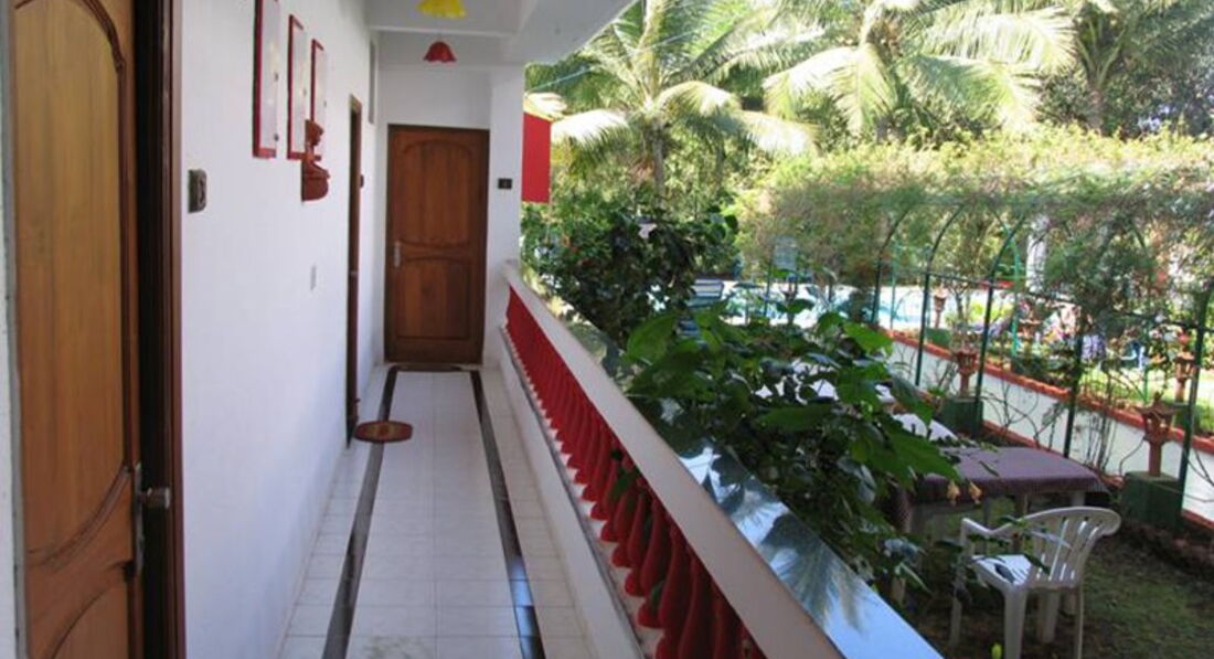 Отдыхали в этом отеле недею с 7.12.16 по 14.12.16 г. Отель небольшой,но очень тихий и уютный. Номер у нас был на 3 этаже(R), что удобно, т.к. там есть веранда с натянутыми веревками(удобно сушить купальники и полотенца)+ на этаже всего 4 номера. Номера очень простые, но есть всё необходимое( кровать, шкаф с кучей вешалок, стол, телевизор(не смотрели вообще), зеркало , тумбочки, кондиционер, холодильник!, вентилятор на потолке, стул). В номере есть балкон , на нем тоже стоят стулья).Постельное белье белоснежное, кровати две сдвинуты вместе, удобные. В ванной лежали 2 запечатанных куска мыла и 3 рулона туалетной бумаги. Из белоснежных полотенец на кровати нам сложили морских скатов. Первые три дня мы забирали ключ от номера с собой. Потом оставили на рецепшен и попросили убраться в номере. Уборку произвели очень хорошо, постельное и полотенца поменяли, доложили еще 2 мыла и еще 3 рулона бумаги))). На следующий день когда мы оставляли ключ ,нас спросили убраться у нас или нет. Мы отказались, т.к. только ночевали в номере. Территория отеля небольшая, но она есть( походив и посмотрев другие отели, понимаешь , что это важно!) Очень зеленая и ухоженно. Работники постоянно что-то стригут,чистят,моют))). Очень симпатично смотрится сам отель(белый с красным). Персонал отеля очень вежливый, доброжелательный,во всем стараются помочь! Расположен отель очень удобно. До пляжа 5 минут, до ценральной дороги , 5 минут, до маленьких ресторанчиков от 2х до 5ти минут. При этом ( поверьте, очень важно!!!) отель стоит в тихом, но достаточно широком и освещенном проулке. Не слышно ничего кроме пения птиц и карканья ворон))). Завтрак ни о чём( тосты, масло-маргарин, джем, чай-кофе с молоком), можно заказать по меню, но мы кушали потом на пляже в шеке. Прямо на выходе на пляж справа стоит шек BEACH QUEEN. Хозяин там Валентин, он же диджей. Кормят в шеке оооочень вкусно и цены приятные! Во время прогулок до Баги пробовали кушать в других местах-невкусно и дорого! Наш друг-официант ДЖЕЙМС! ООоооочень добрый и честный парень! Всегда старался помочь чем мог. Муж забыл телефон в шеке(причём даже не подозревал об этом, думал он валяется в номере), Джеймс вернул ему , даже упаковал, как подарок)))! Уезжая, купили в подарок Джеймсу футболку на память, так он подарил нам фигурку Шивы))). Пляж Калангут-Бага. Песчанный, вода чистая и теплая. После воскресенья на пляже стало грязно, отдыхали местные. По возможности, не соглашайтесь на "ван фото", одним фото не отделаетесь. Придется сфоткаться со всем пляжем)))! Ездили на экскурсию ВЕСЬ ГОА ЗА 1 ДЕНЬ. Заказывали через группу в VK ТВОЙ ГОА. 30$ с человека. Нам повезло, мы вшестером(а не 25 чел. в автобусе) с персональным гидом ездили на машине тойота. Запомнился водопад! Очень грандиозный! Как в кино. Сами ходили по пляжу до форта Агуада. Идти часа 2. Обратно на автобусе. Мопед не брали. А вообще ГОА очень понравился! Вернёмся сюда с радостью!