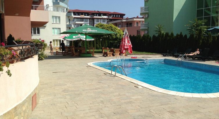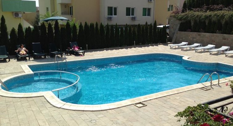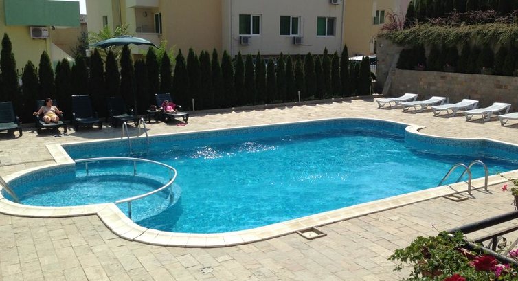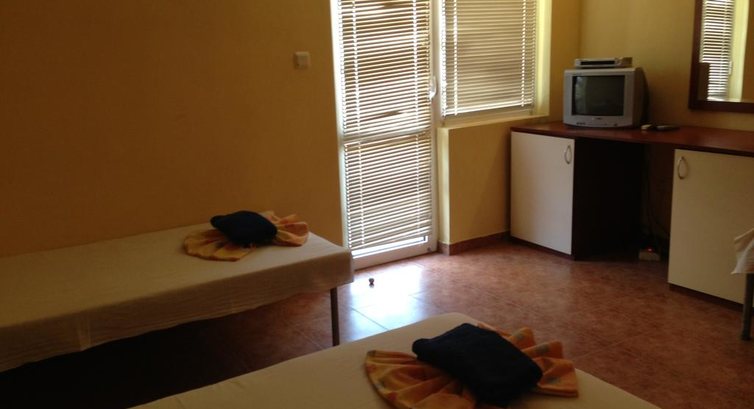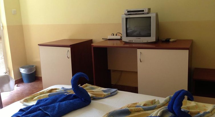 • кондиціонер • телевізор • безкоштовний Wi-Fi • міні-бар (платно) • балкон • підлогове покриття – керамічна плитка Територія та послуги: • відкритий басейн (парасольки, шезлонги – безкоштовно) • зал для сніданків • бар біля басейну • лобі-бар • Wi-Fi на території готелю • парковка, що не охороняється • праска на ресепшені • камера зберігання на ресепшені • послуги лікаря (платно) • оренда автомобілів (платно) Розваги та спорт: Більярд (2 BGN/гра)(платно) Для дітей: • дитяча секція у відкритому басейні • дитяче ліжечко (безкоштовно) • стільці в ресторані Живлення: BB - сніданок (за меню) Пляж: Муніципальний піщаний пляж розташований за 50 м від готелю.