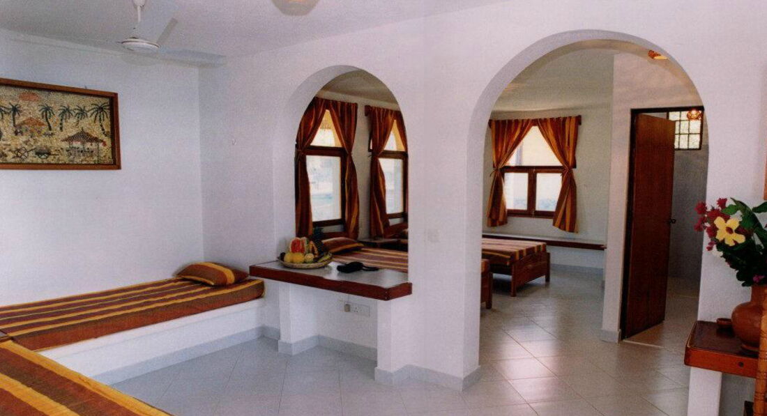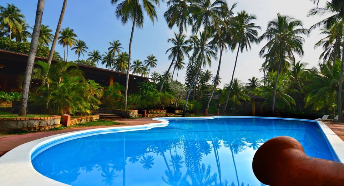 Сама территория гостиницы – по эстетике весьма хороша. Прекрасный садик, в нём реально просторно, не чувствуется скученности, заметен грамотный ландшафтный дизайн. Множество птиц, а также по территории лазают бурундуки и вараны. Варанов не бойтесь – они сами боятся Вас больше, чем Вы их. 2 бассейна, оба – с морской водой, один, как мы его называли, взрослый – побольше размером, неправильной формы, находится наверху, рядом с ресепшн и рестораном. Единственный его минус (а для некоторых и плюс) – мелко в любой точке. Средней комплекции человеку – по грудь. Второй, круглой формы – в нижней части гостиницы – вообще детский. В целом бассейны порадовали – не каждая, даже приличная гостиница может такими похвастать. Полноценных водяных горок для взрослых нет. Есть детская горка, крайне пологая, но в наше присутствие она не работала, не смотря на приличное количество детей. Есть возможность сделать массаж – это больше интересно девочкам. Цены – сравнивать особо не с чем, но дешевле, чем в Москве. Отзывы – положительные. Подходите к Манджу и просите к такому-то часу пригласить массажистов. Они – приходящие, по звонку, но работают очень добросовестно – поверьте, есть с чем сравнивать. Есть “центр” для некоторых дыхательных упражнений – Аюрведы, так кажется, это называют. “Центр” представляет из себя настил – крышу, под которой можно расстелить матрасики и заниматься. Две девочки даже при нас несколько дней занимались с тренером.