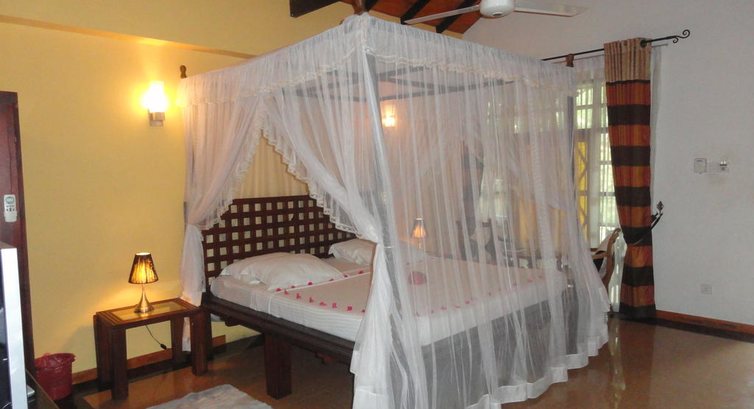 В номере кровать с балдахином, очень спасает от комаров, которых было не так много. Перед сном можно поджигать спираль, чтоб наверняка.