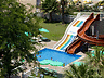 Добрый день! Отдыхали в данном отеле с сыном 4 года в период с 4.06.2014 по 20.06.2014гг. Вылет переносили дважды, но это собственно и не имеет отношения к делу, извечная проблема ПегасТуристик. Были в этом отеле впервые, улетели по горящей путевке, купили буквально за 10 часов до вылета. Ехать до отеля 2 часа от аэропорта, как то дорога не сильно напрягла. Приехали уже в 9 вечера, засели мгновенно, минут за 20 во второй корпус. В номере все новое, мебель, сантехника. Номер большой, вид с балкона наискосок на море. В номере устроило абсолютно все. Убирали исправно каждый день, меняли полотенца, принадлежности, тут претензий никаких. Основные две проблемы для нас с ребенком были: 1) Слышимость. При закрытом балконе ночью спать просто невозможно. Музыка на дискотеке орет так, что не помогает ничего. Не спали 2 ночи, потом привыкли. Просила заменить номер-ответили что заменят без проблем, но слышимость везде одинаковая. Территория маленькая, корпуса все впритык к друг другу, территории почти нет, дискотека со сценой рядом. 2) Очереди в ресторане. Вот это САМЫЙ страшный ужас что там был) Когда наконец то достоишь в своей очереди, еще нужно доказать что ты не один отдыхаешь, а с кем то, чтобы тебе положили еду в 2 тарелки. Гриль и горячее строго в ограниченном количестве. Взять самому-нереально. Ставила 4-х летнего ребенка в одну очередь, и уходила в другую. Потом судорожно искали свободный стол. О чистой скатерти с приборами речи даже не шло, с самого первого дня я поняла что это нереально) Море совсем рядом, песок, вход довольно пологий. Иногда были водоросли, их исправно убирали работники пляжа. Нам лежаков и зонтов всегда хватало) На горках не катались, об этом ничего сказать не могу. Есть анимация, с самого раннего утра на бассейне. Зарядка, какие то игры, не участвовали.. Вечером детская анимация, потом взрослая. Скучать не приходилось в общем то. Что могу сказать в целом: Отдыхали в таком отеле впервые, до этого были в Египте, в Испании, в Турции в отелях Pemar Beach и Maritim в Белеке, сравнивать конечно очень сложно, и разумеется не в пользу данного отеля. Но в целом отдыхом довольна, за исключением некоторых нюансов, которые можно с лихом перекрыть ценой по горящей путевке и 16-ю днями проживания. Как ни странно рассматриваю этот отель для отдыха в этом году, так как финансово другую категорию пока потянуть нет возможности. Возможно, закрыв глаза на недочеты приедем еще раз)