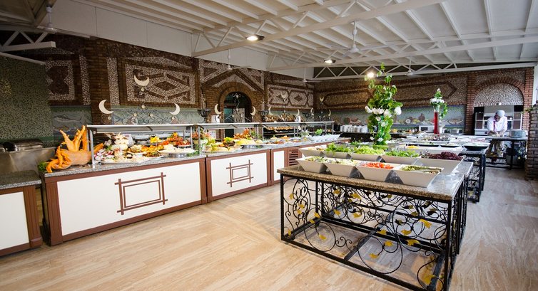 Включає: сніданок, обід, вечеря, пізня вечеря - шведський стіл; закуски протягом дня у барах готелю, алкогольні та безалкогольні напої місцевого виробництва, а також певний вибір імпортних алкогольних напоїв. Свіжі соки (08:00-24:00) - платно, морозиво (15:00-15:45) - безкоштовно. Молодятам - кошик фруктів, шампанське; постійним гостям – кошик фруктів; іменинникам – кошик фруктів, вино.