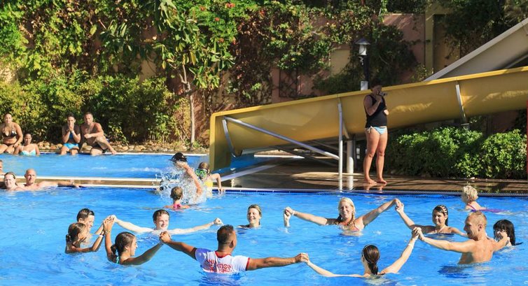 Развлечения. Детям нравились водные горки, включаются они 2 раза в день, часа по 2 и даже дольше, все даже устают по хорошему. Вода в бассейне достаточно чистая, запаха хлорки не заметно, глаза не щиплет. Несколько дней была прикольная аниматор Наташа, но потом ушла в другой отель. С ее уходом анимация стала совсем никакой. Днем игры в дартс и водное поло.