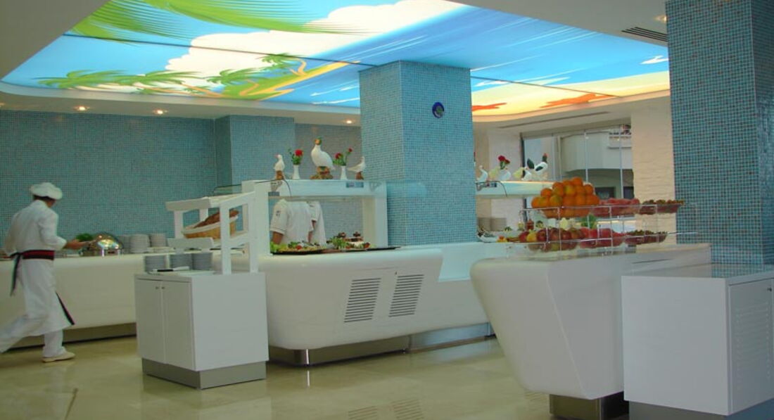 Кухню отмечу отдельно. Очень разнообразно, порой даже изысканно и очень вкусно. Десерты выше всех похвал.Особенно песочный торт в шоколадной глазури. Напитки в баре за отельную стоимость. Вино- не советую. В Турции вообще как-то с вином хорошим туго. Голова гудела после одного бокала. Пиво- стандартное, Efes. Про коктейли ничего сказать не могу, не баловались)) Фрукты были в изобилии: вкуснейшие арбузы, пресные дыни(бяка), алыча, потрясающей сладости черешня, персики и т.д. Итог: полупансиона хватало с лихвой.