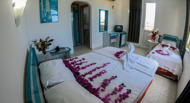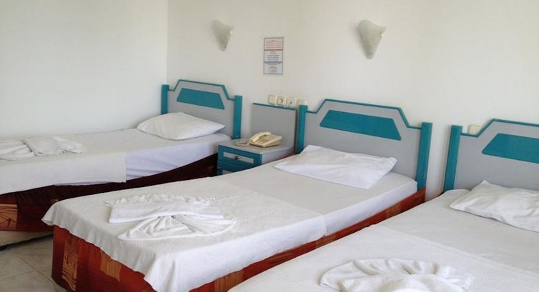 Отдыхали с женой и ребенком 1.5 лет, в 2015м году в июне-июле, отель небольшой и больше семейный. По приезду- почти сразу разместили, номер попался на первом этаже, с удручающим видом на соседний, полузаброшенный дом, сам номер мне не понравился, т. к. по общению с другими туристами, узнал, что есть и по-лучше, с видом на горы или город, в номере мебель была старая и пошарпанная, в душе - разруха(но мы же приехали туда не в номере сидеть), по еде все однообразно, мяса практически не было, хотя в соседних трешках баловали больше(узнавал от таких же туристов из соседних отелей), больше порадовал персонал, а именно Ахмед,- веселый, добрый, отзывчивый мужчина, который выполнял функции незаменимой батарейки(официант, бармен, актер, и просто хороший человек), был там всем недовольный бармен,- к нему даже подходить было как то не по себе, такое чувство, что из своего кармана льет. Территория отеля не большая, но есть и садик и бассейн и какие то непонятные заброшенные корпуса(возможно и этого же отеля), на территории можно было бесплатно играть в теннис настольный, бильярд, есть два бассейна, горка одна, есть киоск с игрушками и сладостями. Раз в неделю турецкая ночь. От пляжа собственного минут 15 не быстрым шагом, сам пляж чистый, шезлонги и зонтики бесплатно - за пляжем постоянно следит персонал(мужчина в ковбойской шляпе, тоже кстати всегда улыбчивый и готов помочь). В отеле в основном отдыхали русские и турки, сам хозяин с семьей всегда ужинал там же. В целом все понравилось, но думаю цена немного завышена за данный отель. Оценку немного занизил за номер, в целом думаю на 3.8 тянет.